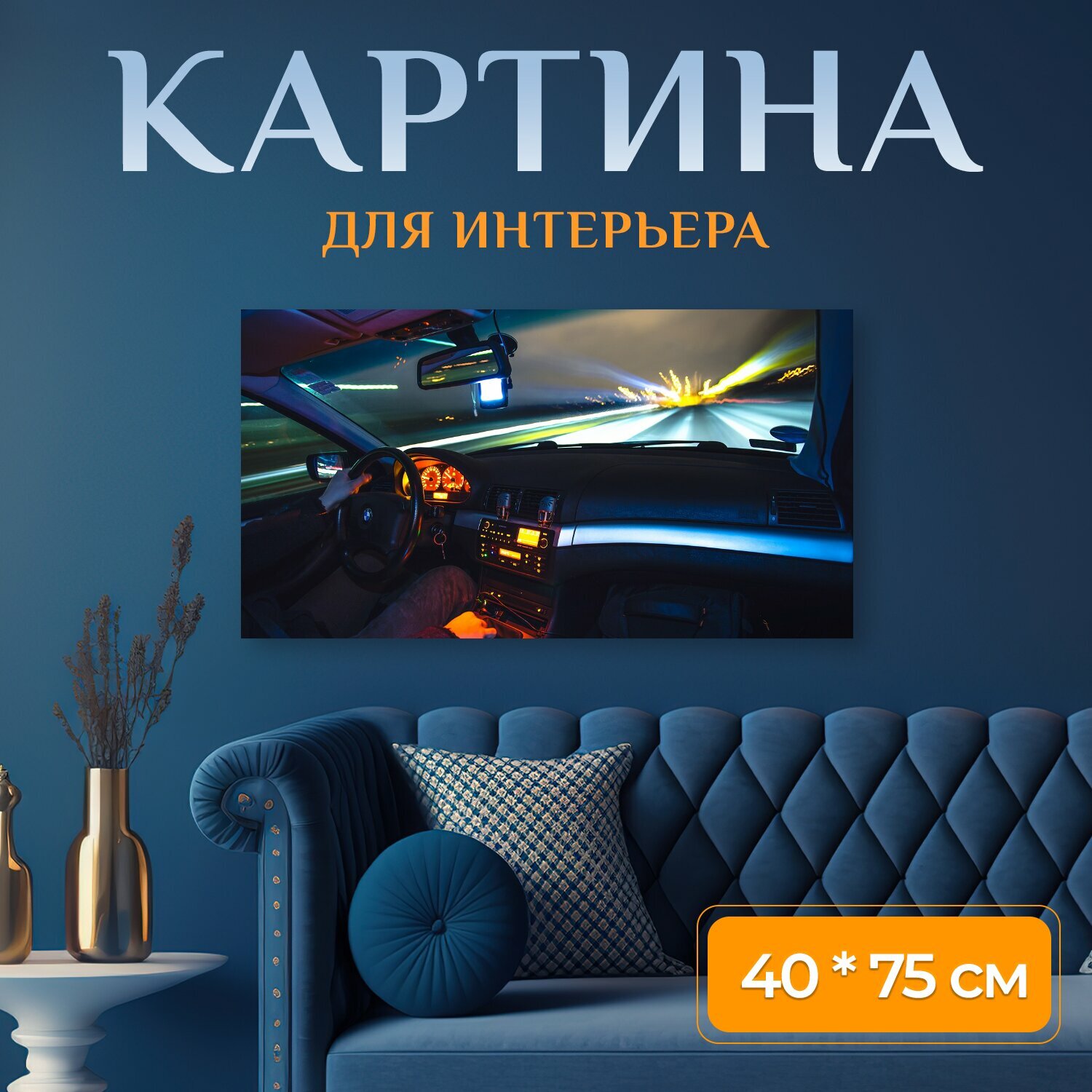 Купить Картина на холсте "Вождение, движение, размытие" на подрамнике 75х40 см. для интерьера