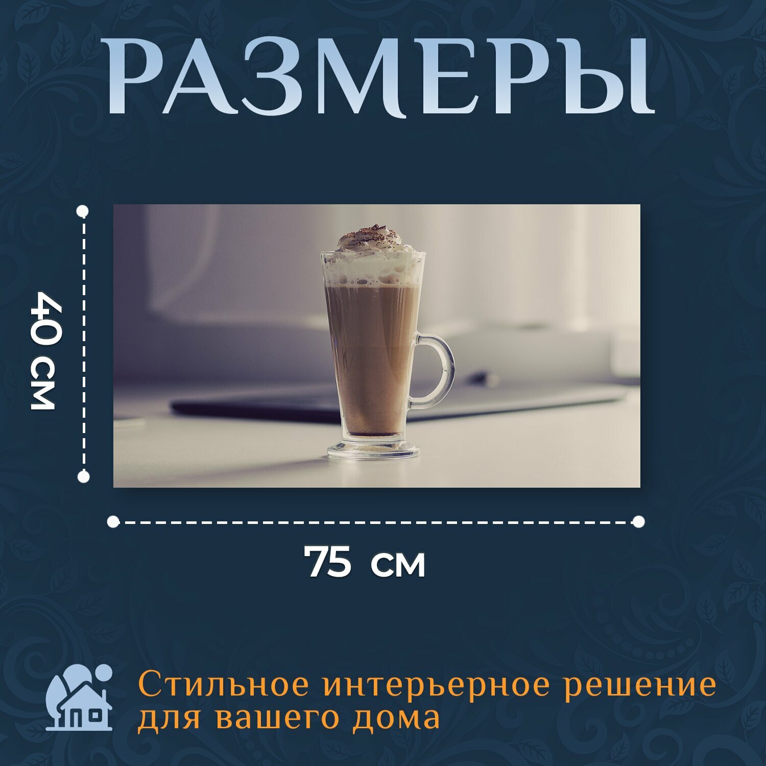 Купить Картина на холсте "Кофе, латте, взбитые сливки" на подрамнике 75х40 см. для интерьера