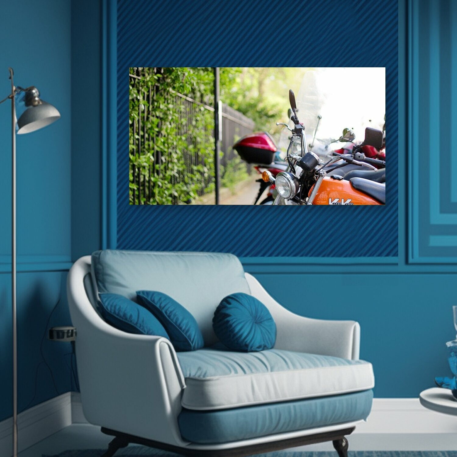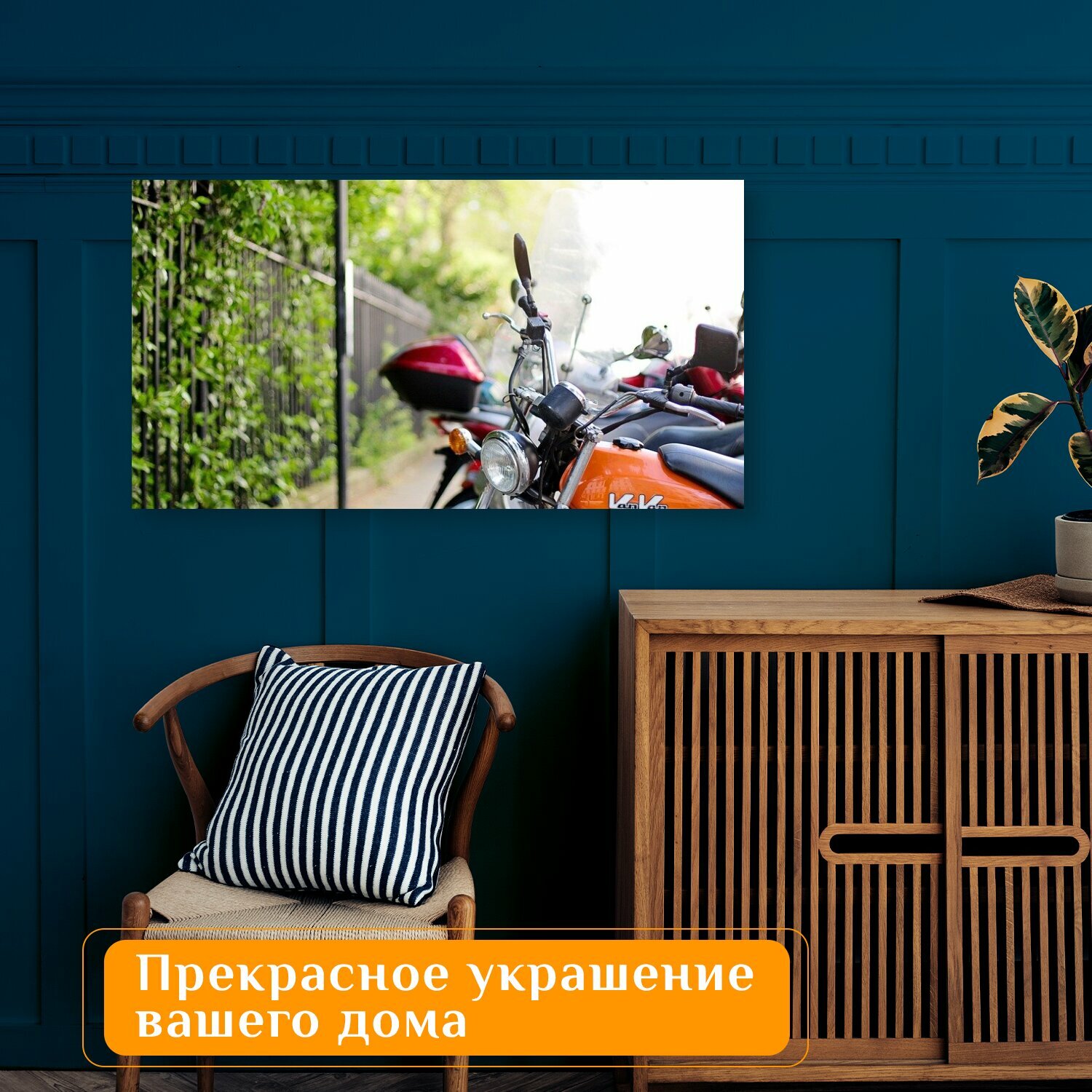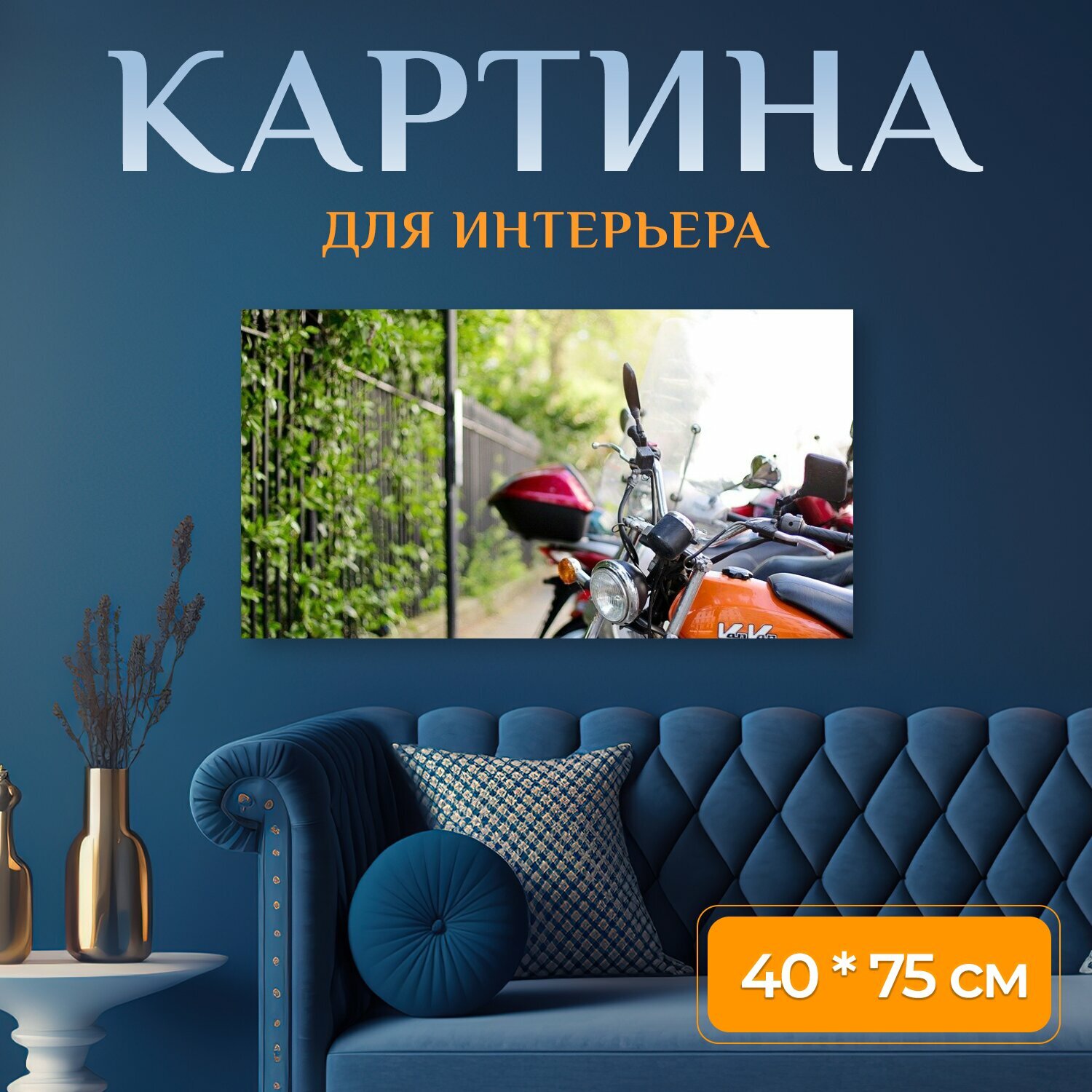 Картина на холсте "Мотоцикл, транспортное средство, велосипед" на подрамнике 75х40 см. для интерьера интересное: