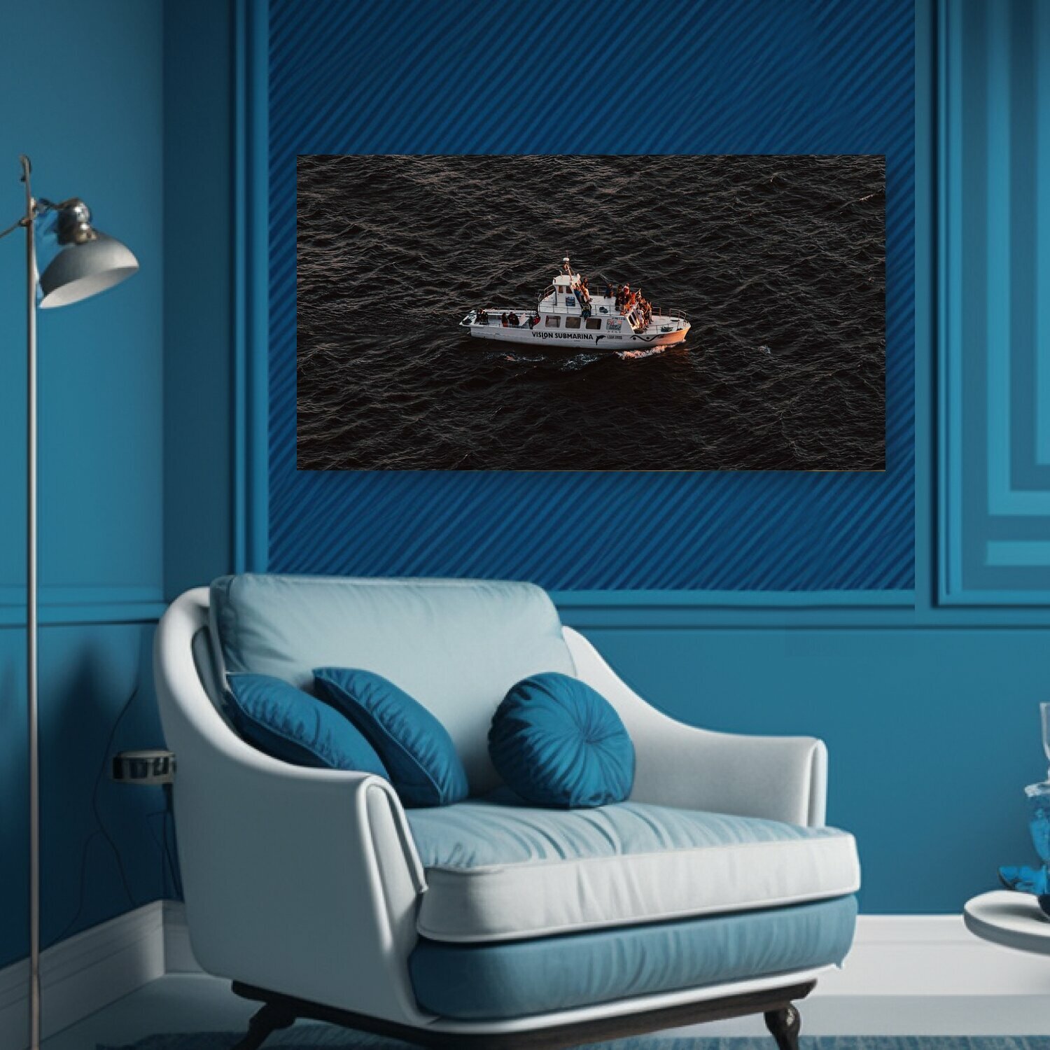Картина на холсте "Судно, море, лодка" на подрамнике 75х40 см. для интерьера интересное: