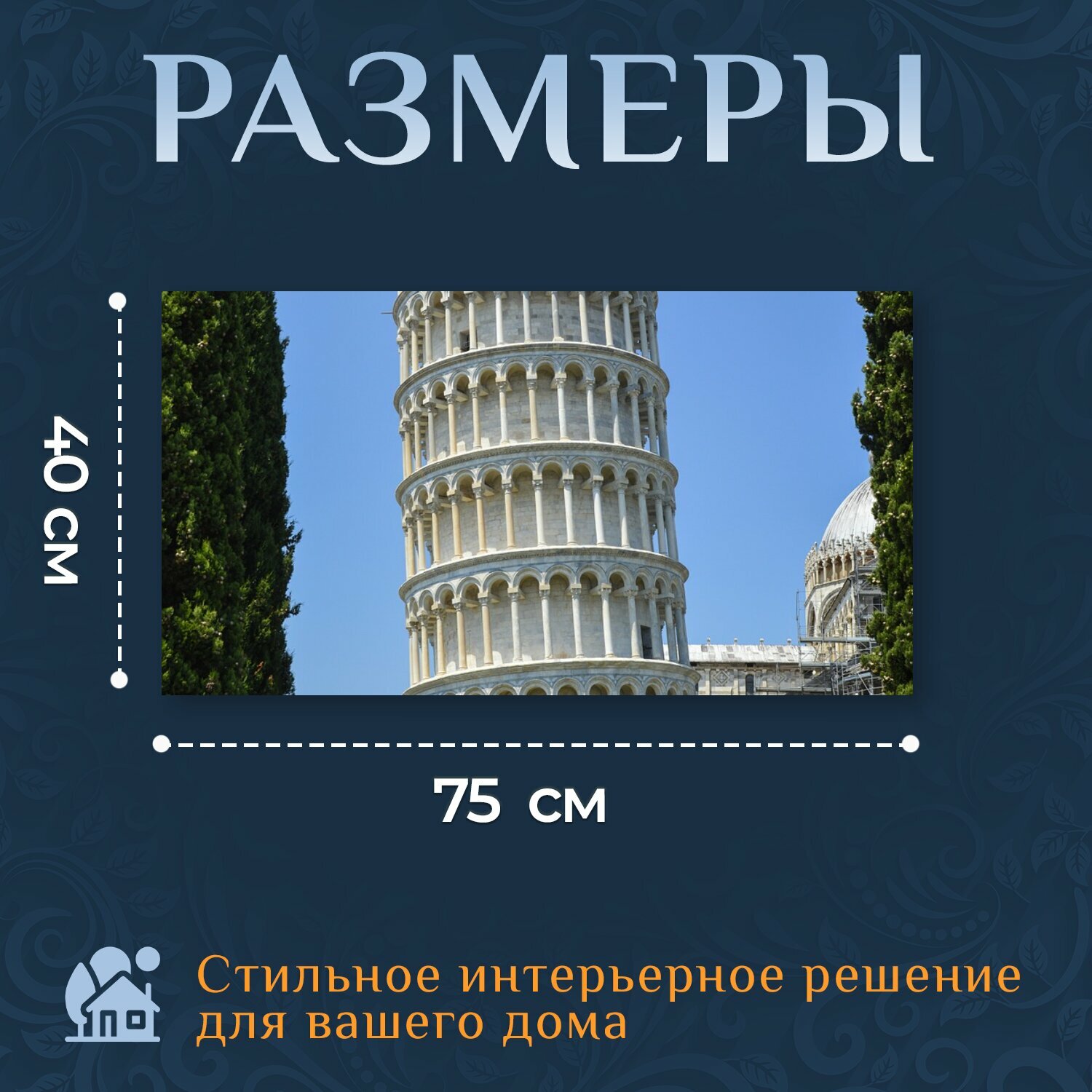 Картина на холсте "Пиза, италия, тоскана" на подрамнике 75х40 см. для интерьера интересное: