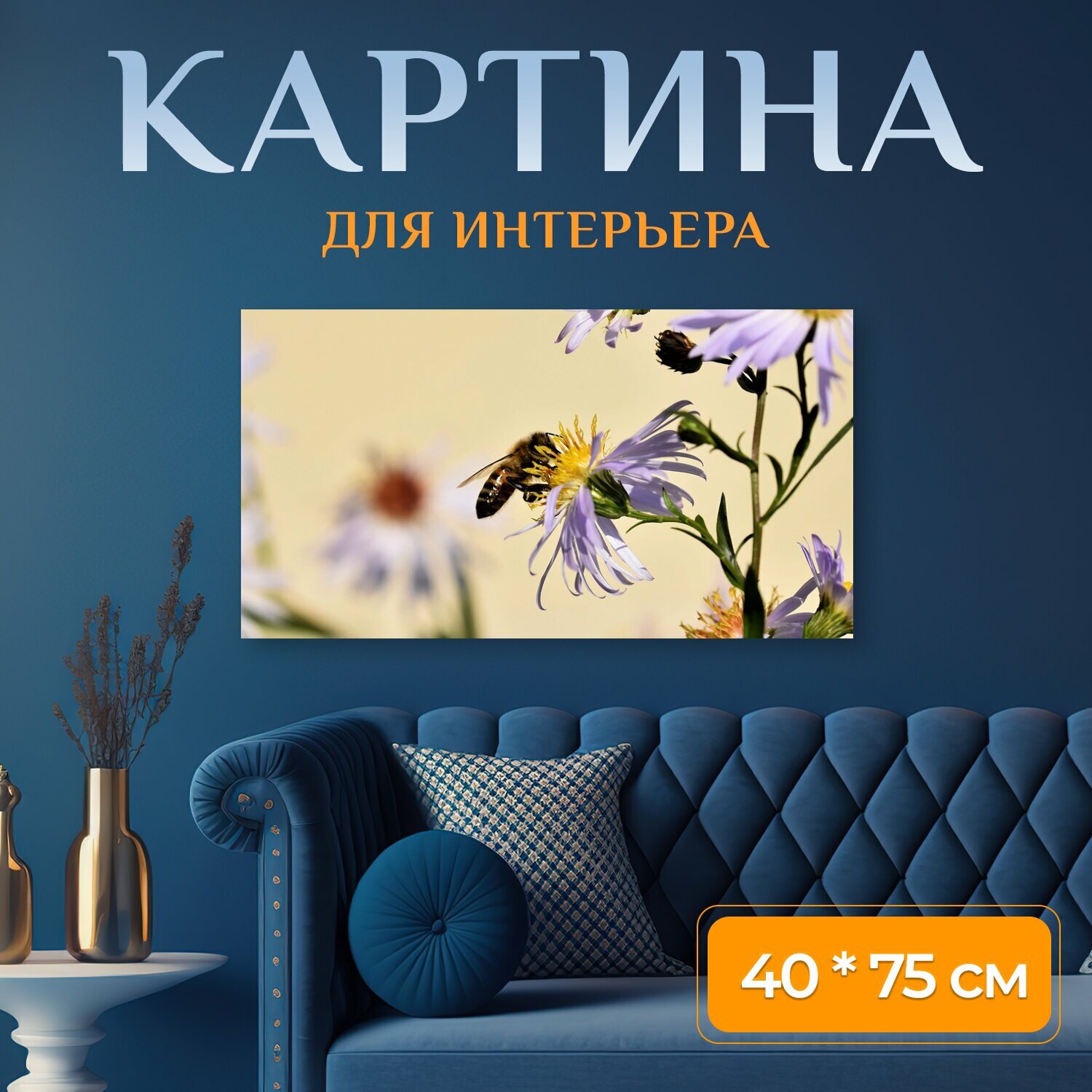 Купить Картина на холсте "Пчела, насекомое, астра" на подрамнике 75х40 см. для интерьера