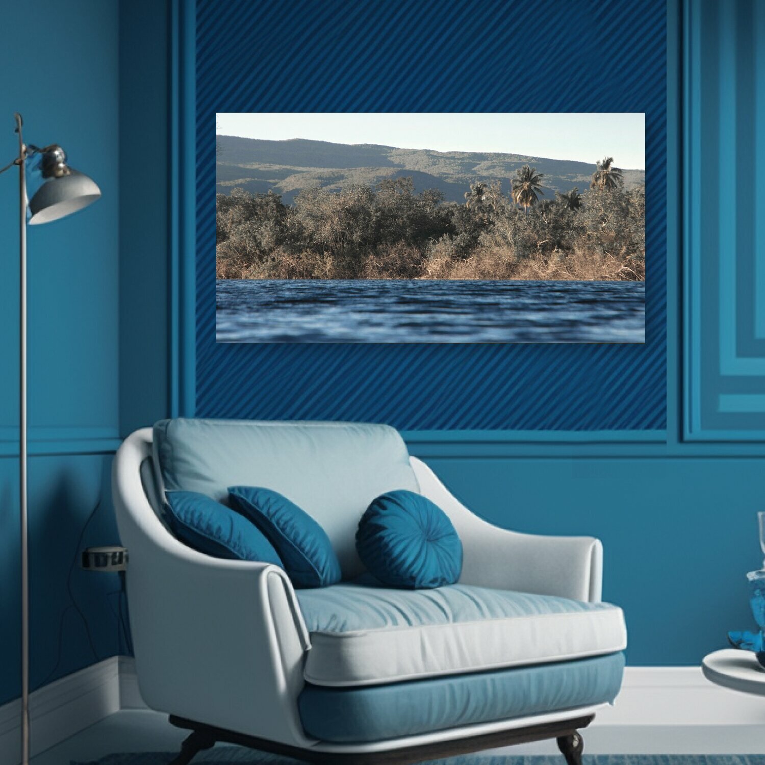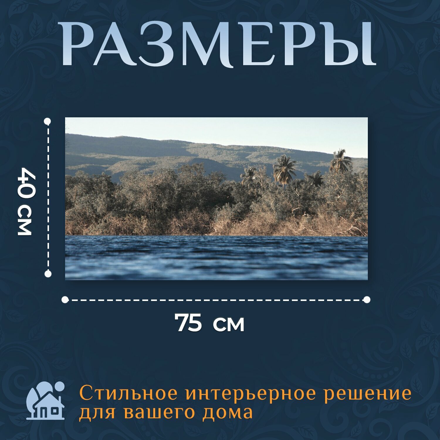 Картина на холсте "Река, озеро, вода" на подрамнике 75х40 см. для интерьера интересное: