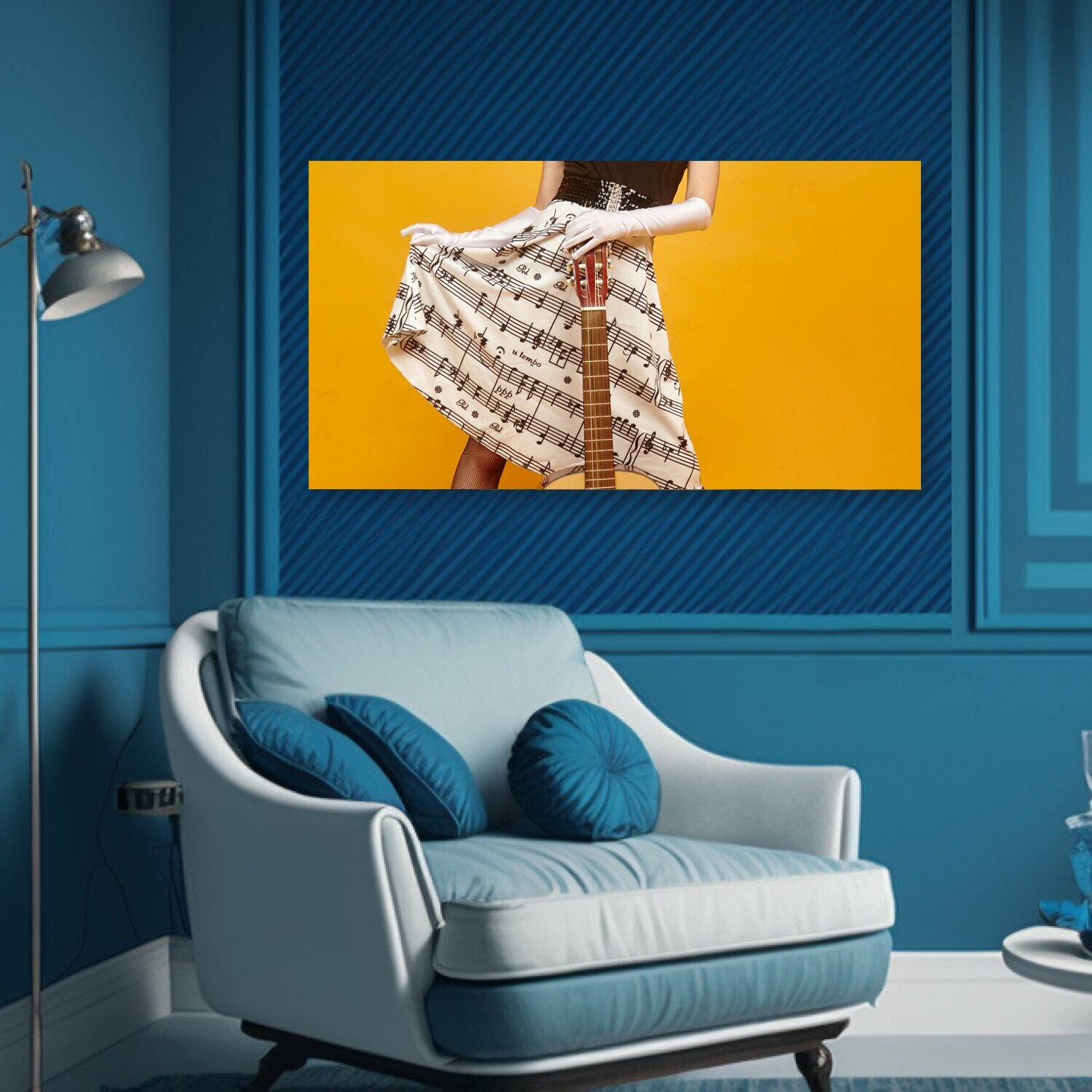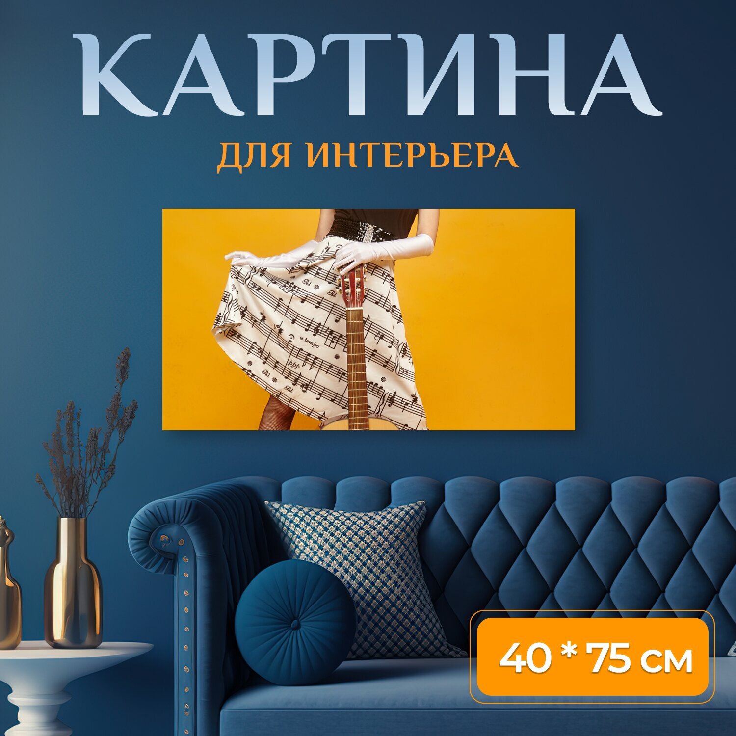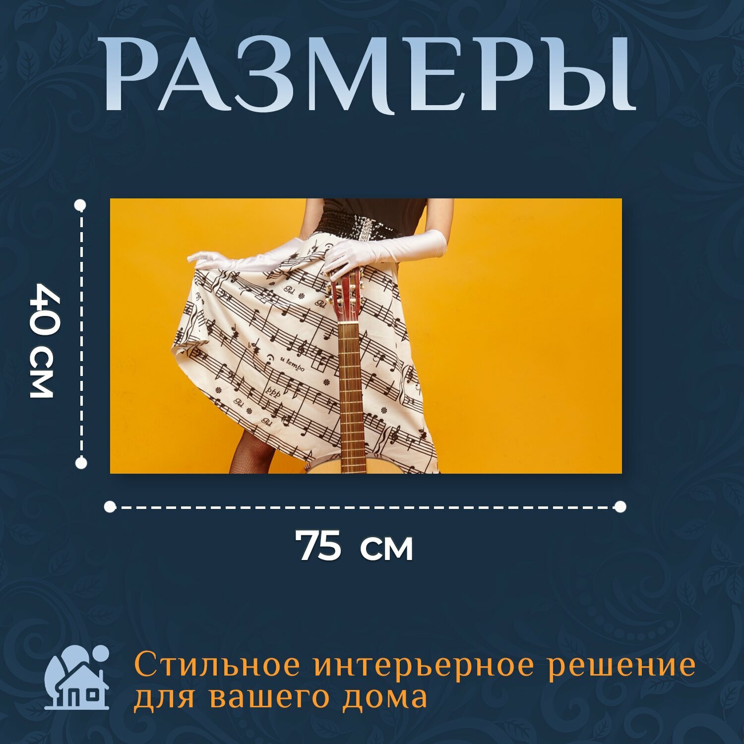 Картина на холсте "Гитара, девушка, женщина" на подрамнике 75х40 см. для интерьера интересное: