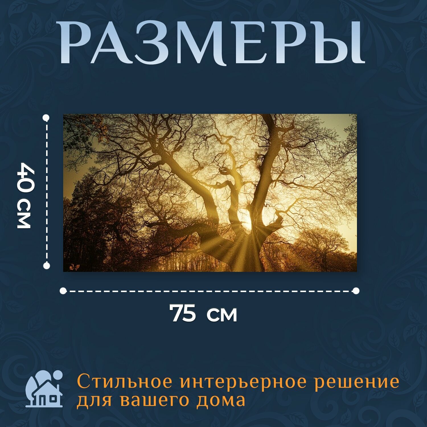 Картина на холсте "Дерево, лес, солнечный лучик" на подрамнике 75х40 см. для интерьера интересное: