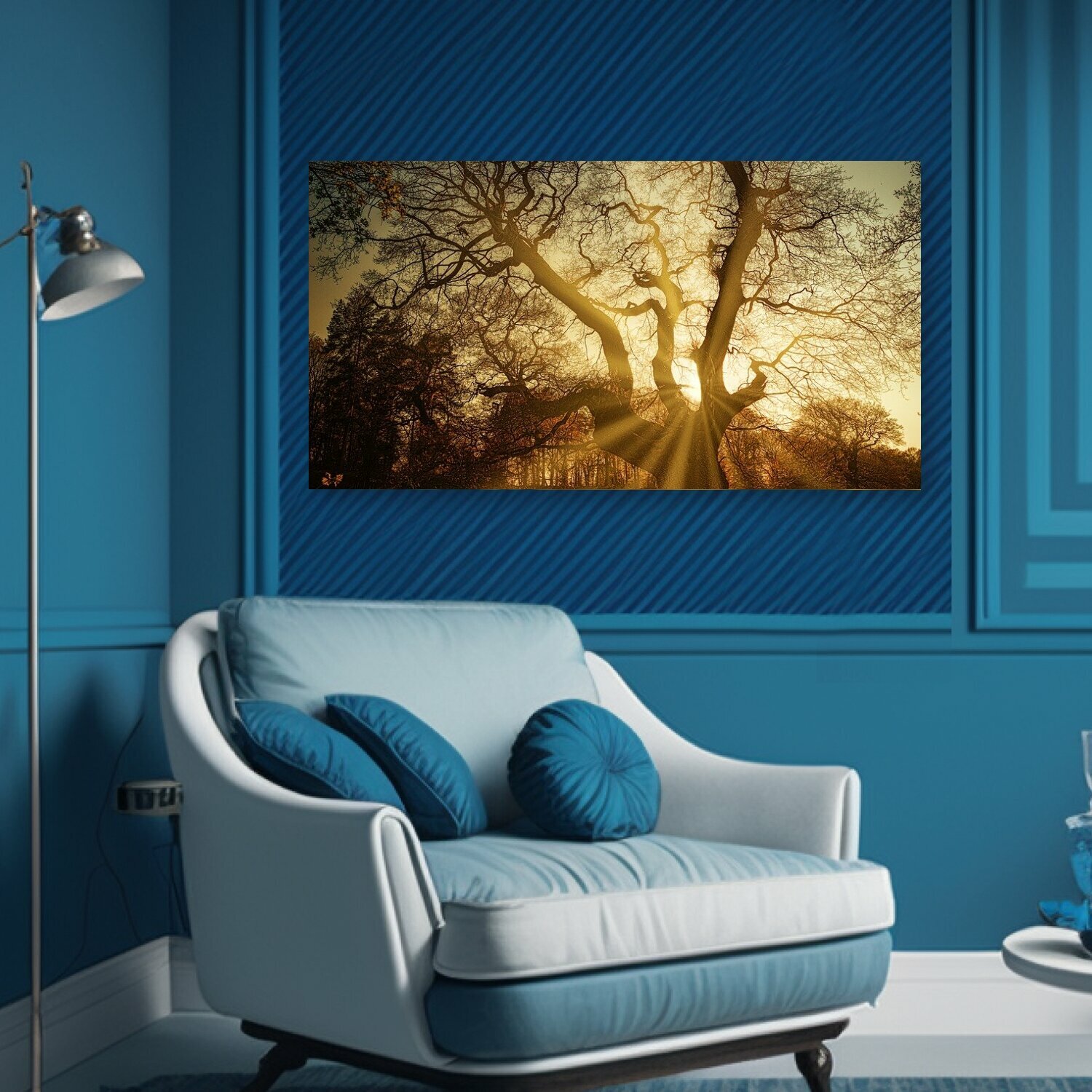 Купить Картина на холсте "Дерево, лес, солнечный лучик" на подрамнике 75х40 см. для интерьера