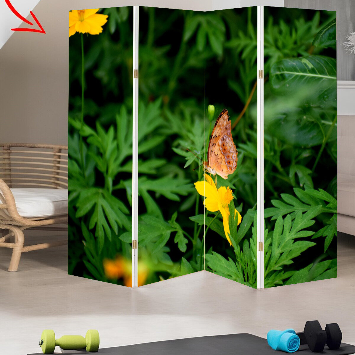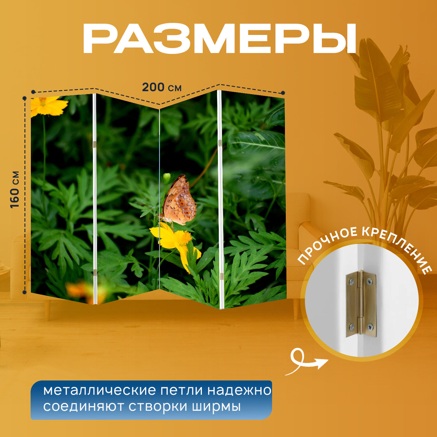 Ширма перегородка с принтом "Бабочка, цветок, насекомое" на холсте - 200x160 см. для зонирования, раскладная интересное: