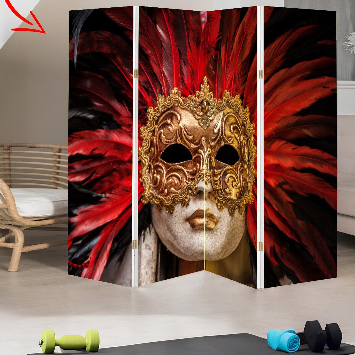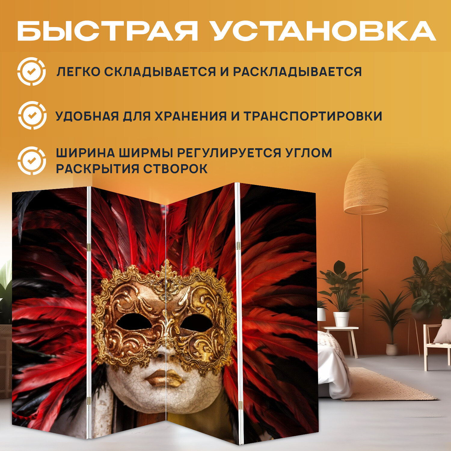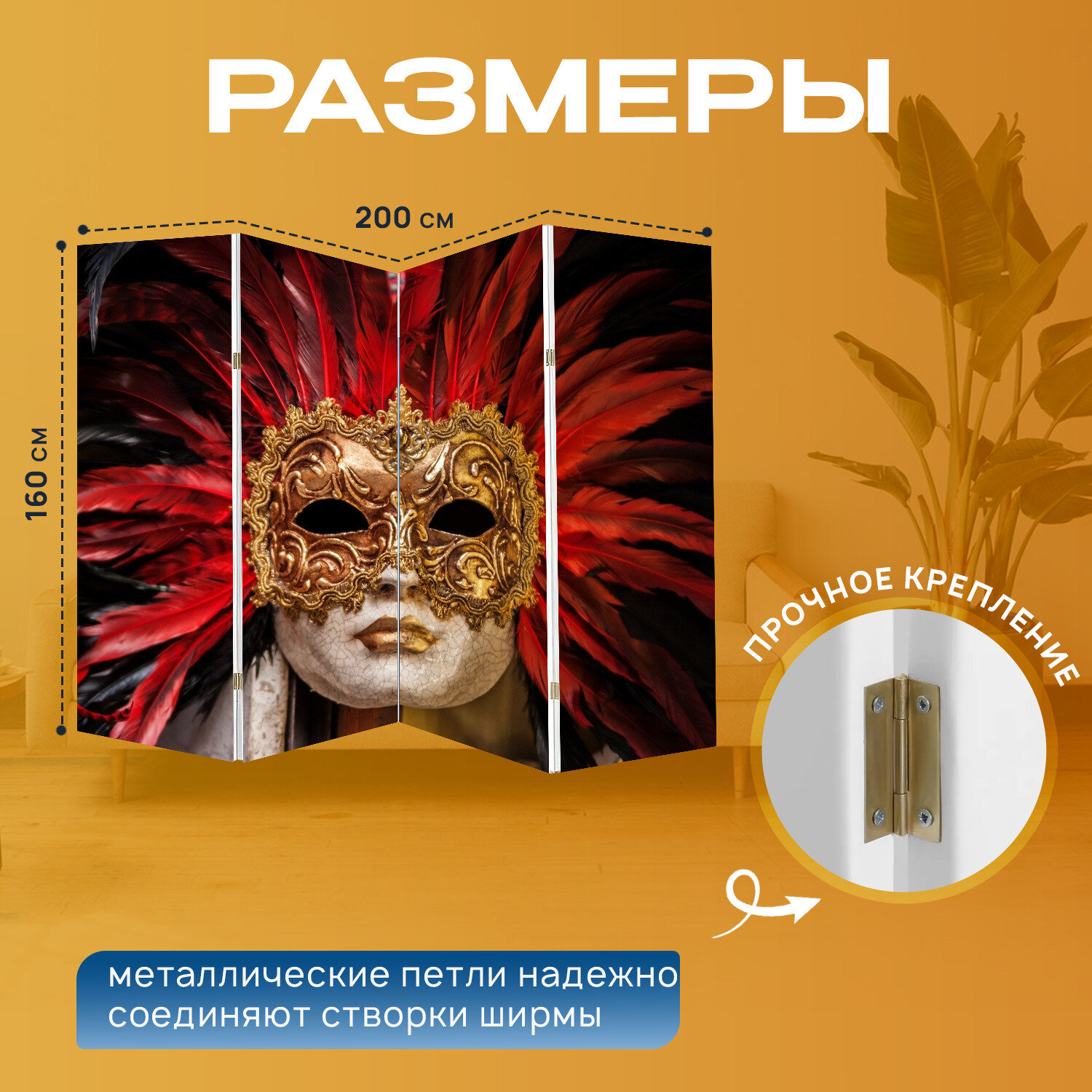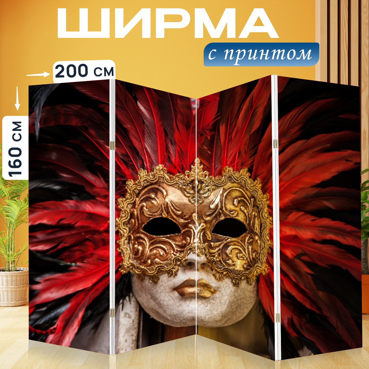 Ширма перегородка с принтом "Венецианская маска, карнавал, перья" на холсте - 200x160 см. для зонирования, раскладная интересное: