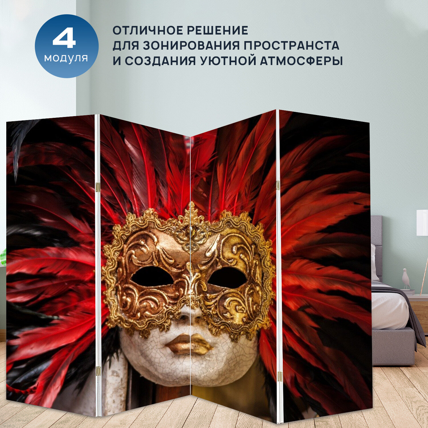 Купить Ширма перегородка с принтом "Венецианская маска, карнавал, перья" на холсте - 200x160 см. для зонирования, раскладная