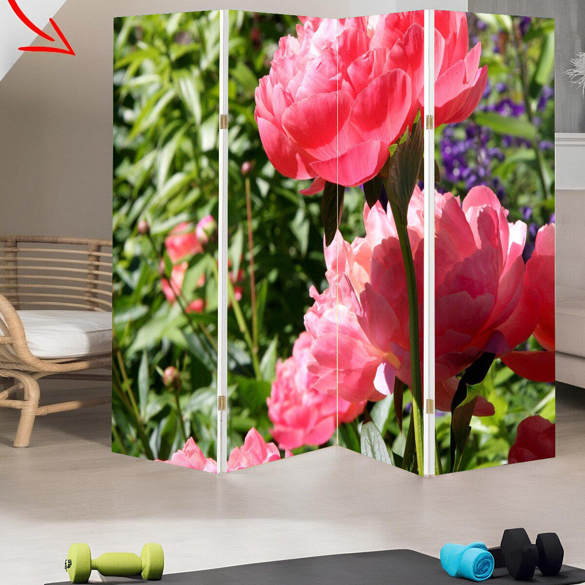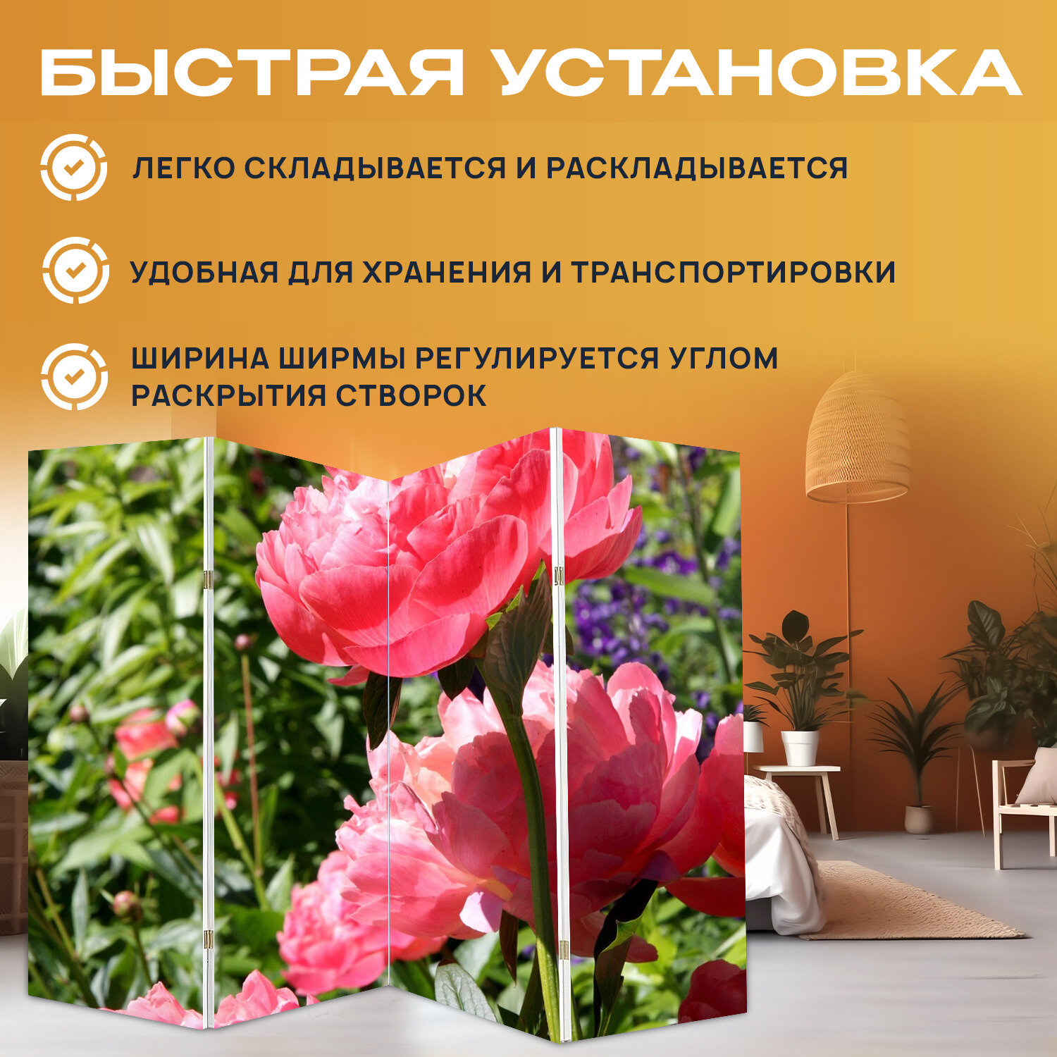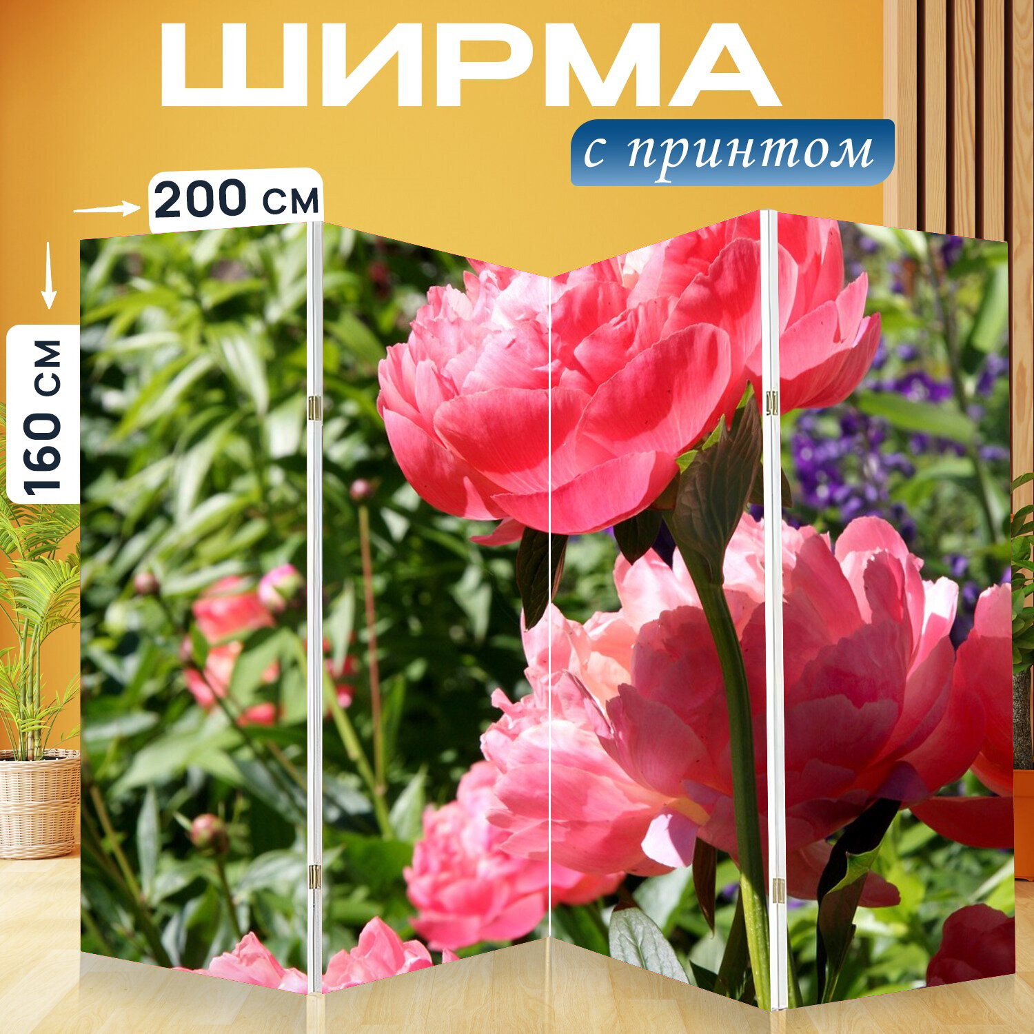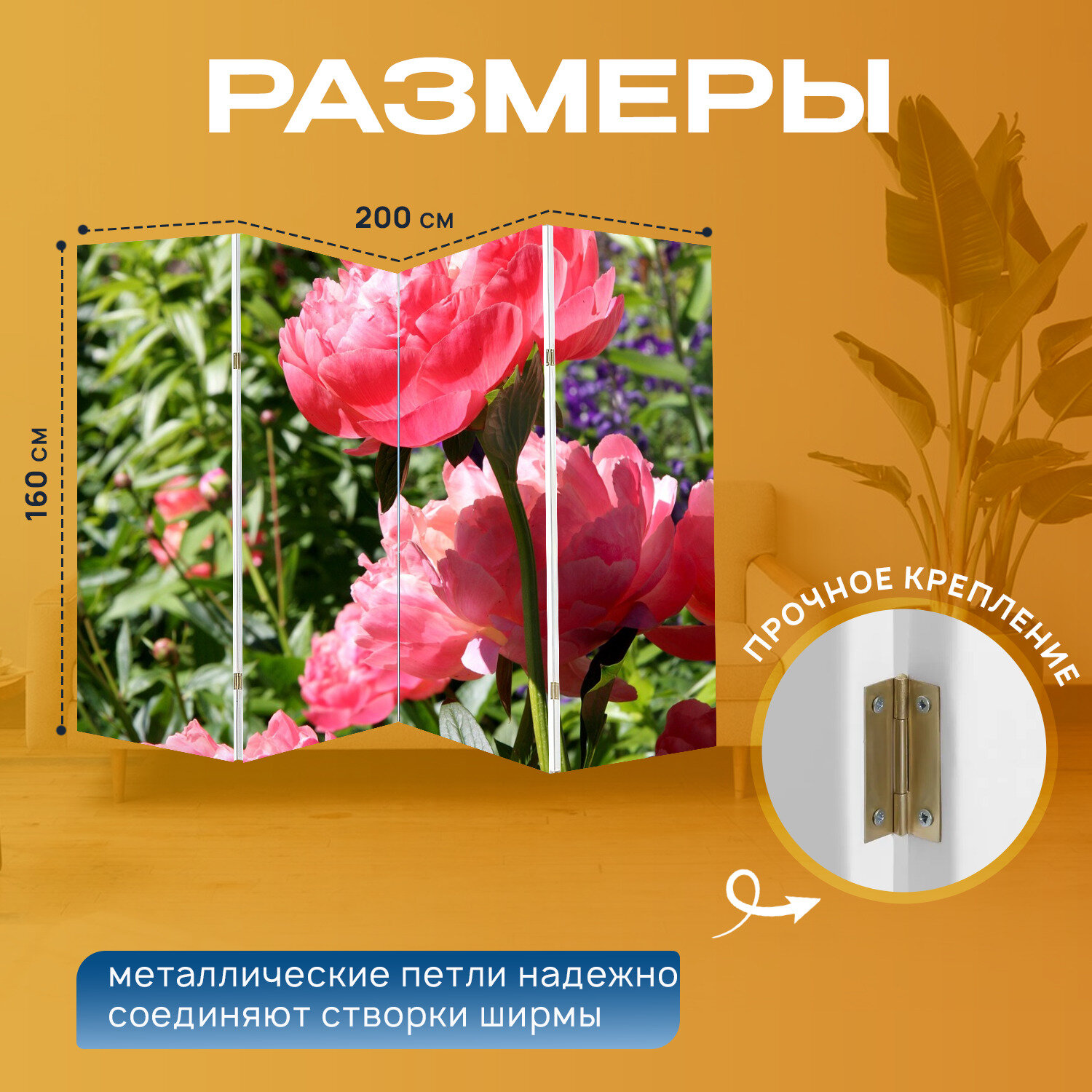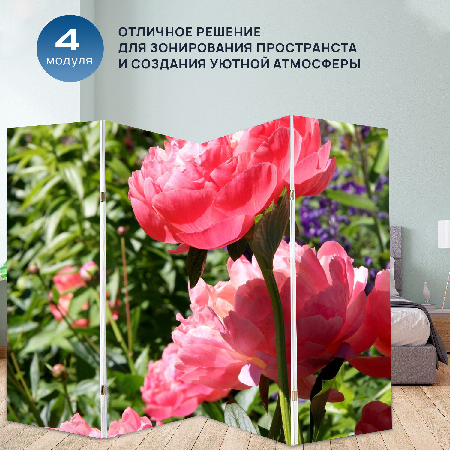 Ширма перегородка с принтом "Цветы, розовый, пионы" на холсте - 200x160 см. для зонирования, раскладная интересное: