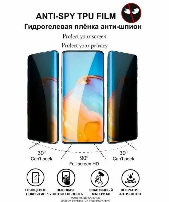 Гидрогелевая защитная пленка для Samsung Galaxy A70s, глянцевая, ( антишпион ) комплект из 5 штук интересное: