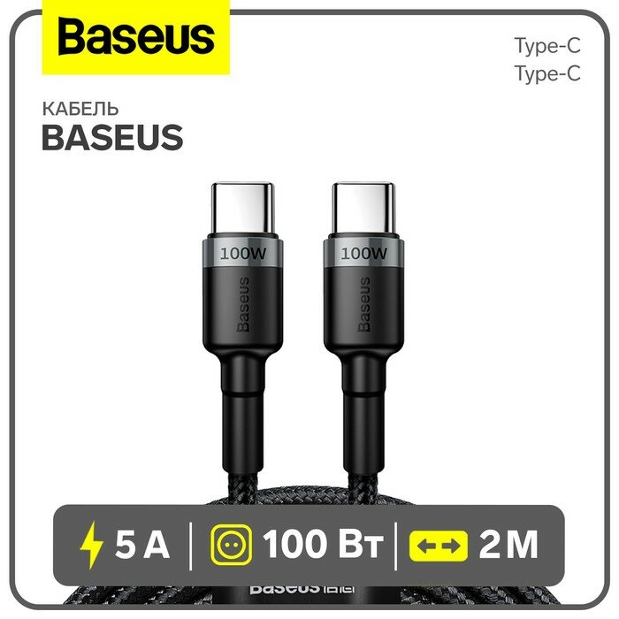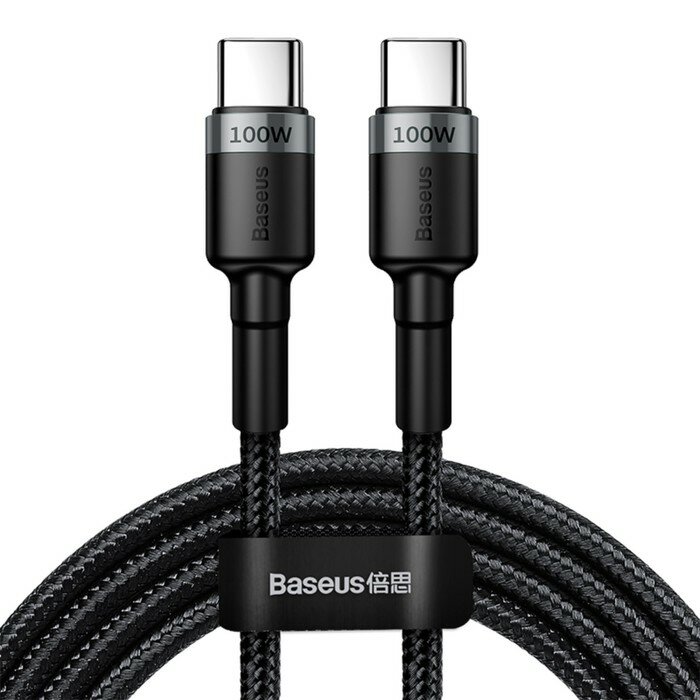 Купить Baseus Кабель Baseus, Type-C - Type-C, 5A, 100W, 2 м, серый+черный