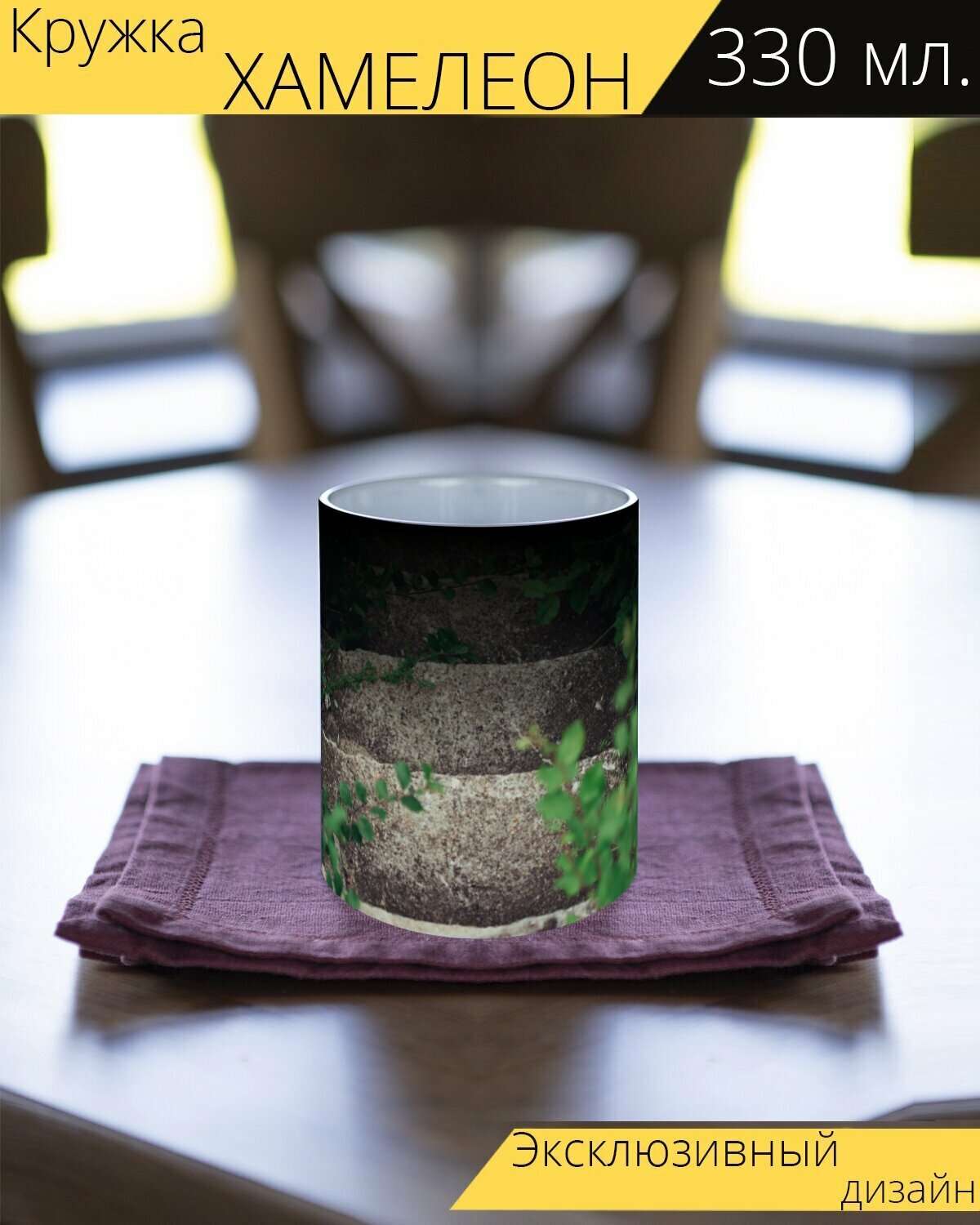 Кружка хамелеон с принтом "Конкретный, на открытом воздухе, растения" 330 мл. интересное: