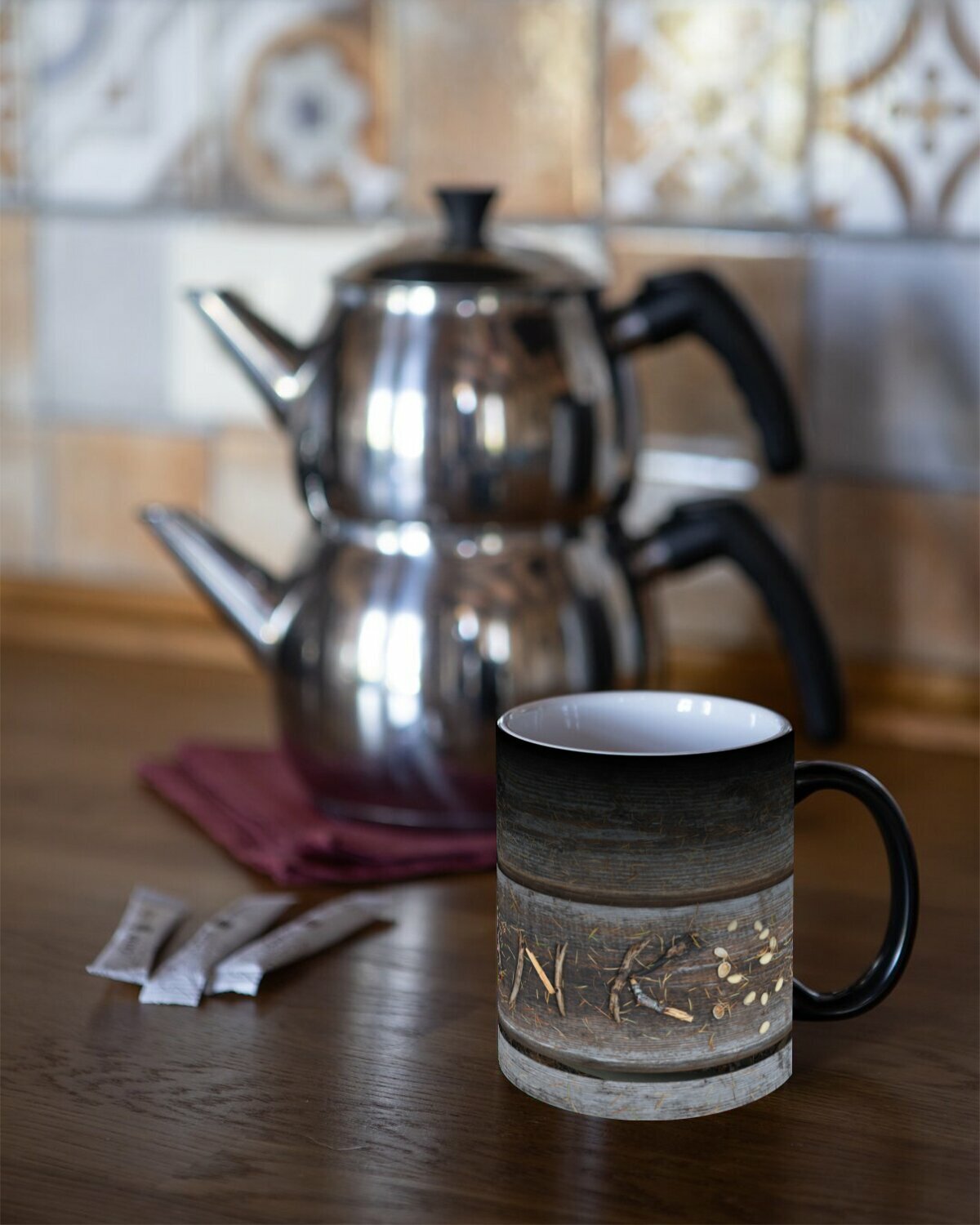 Купить Кружка хамелеон с принтом "Благодарность, стол, природа" 330 мл.