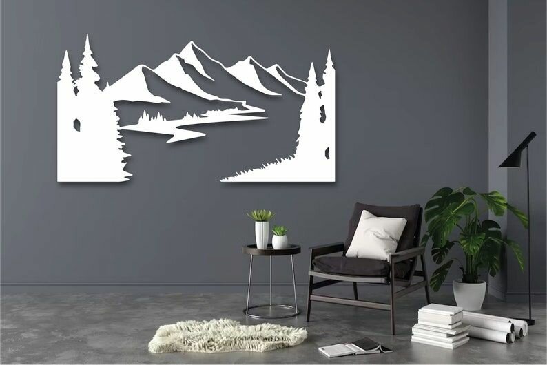 Купить Чертеж, декоративное панно, Горы и озеро (белый цвет), DXF для ЧПУ станка