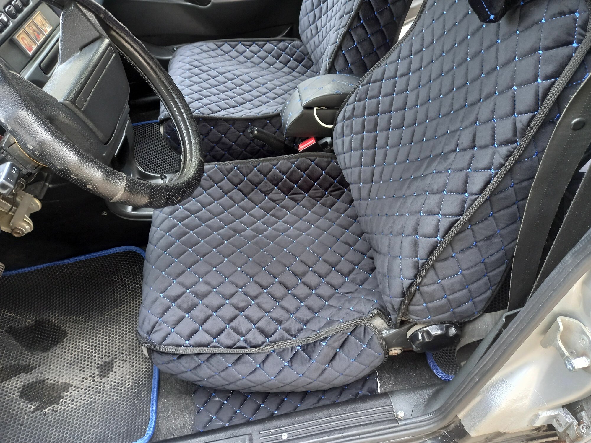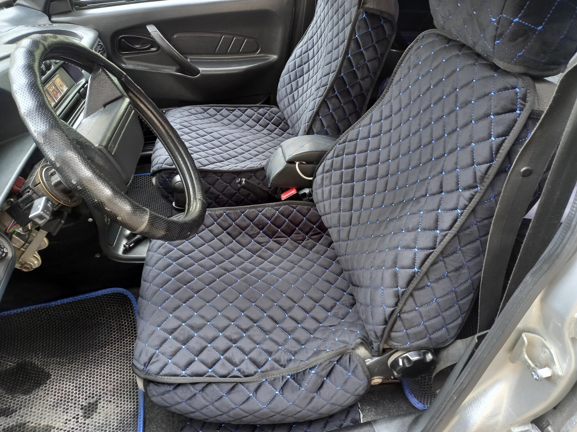 Накидки на передние сиденья автомобиля ВАЗ 2114-2115 С боками из велюра в ромбик интересное: