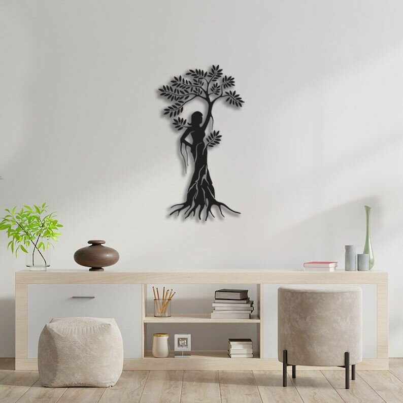Чертеж, декоративное панно, Девушка-дерево (черный цвет), DXF для ЧПУ станка интересное: