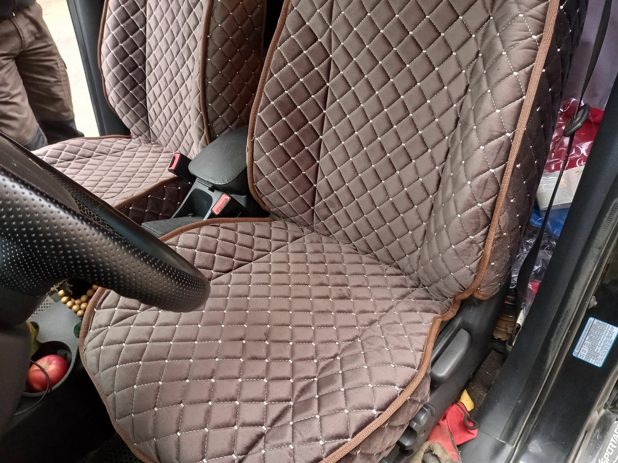 Накидки на передние сиденья автомобиля Kia Sportage II С боками из велюра в ромбик интересное: