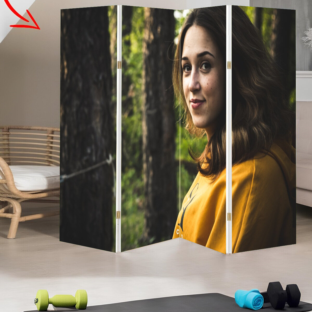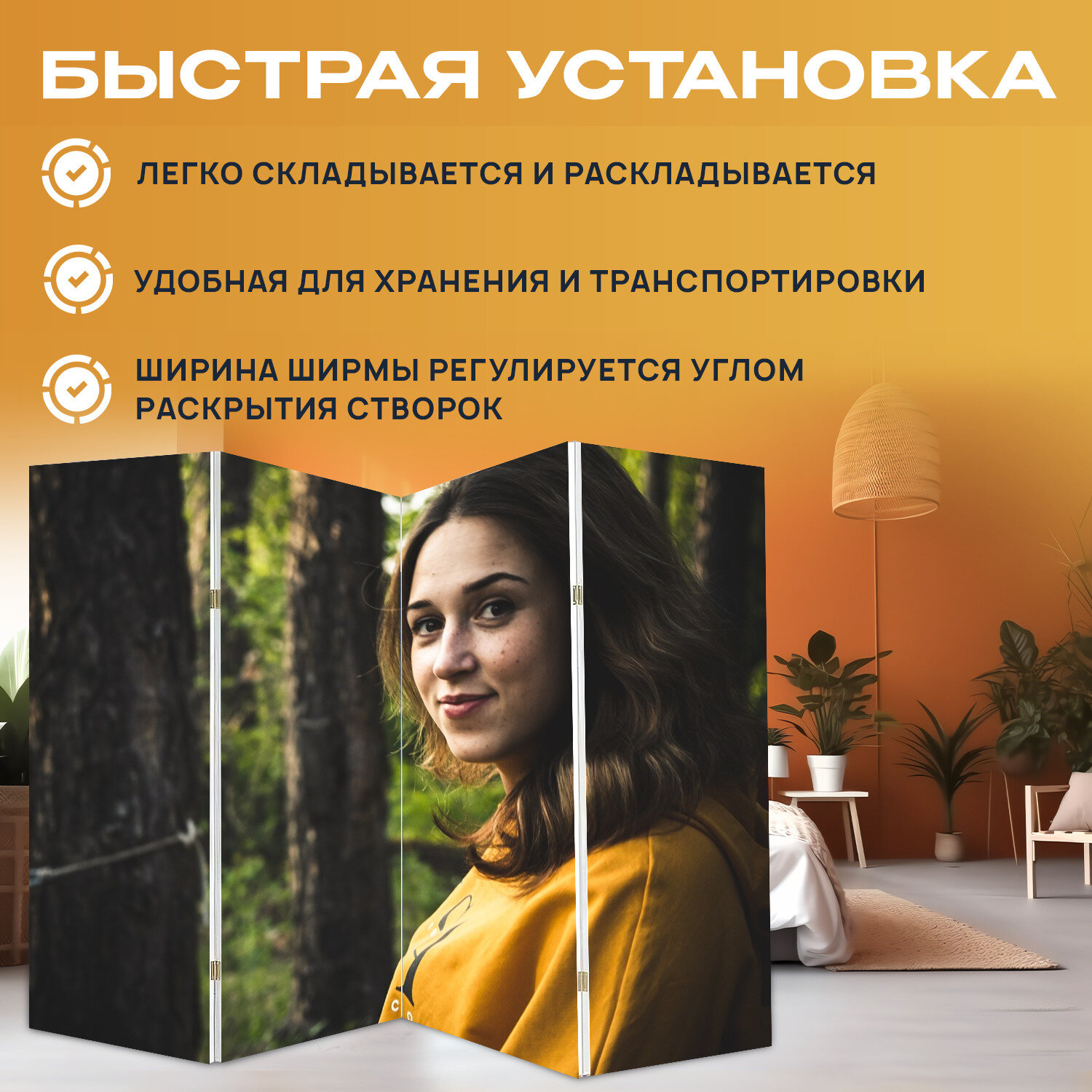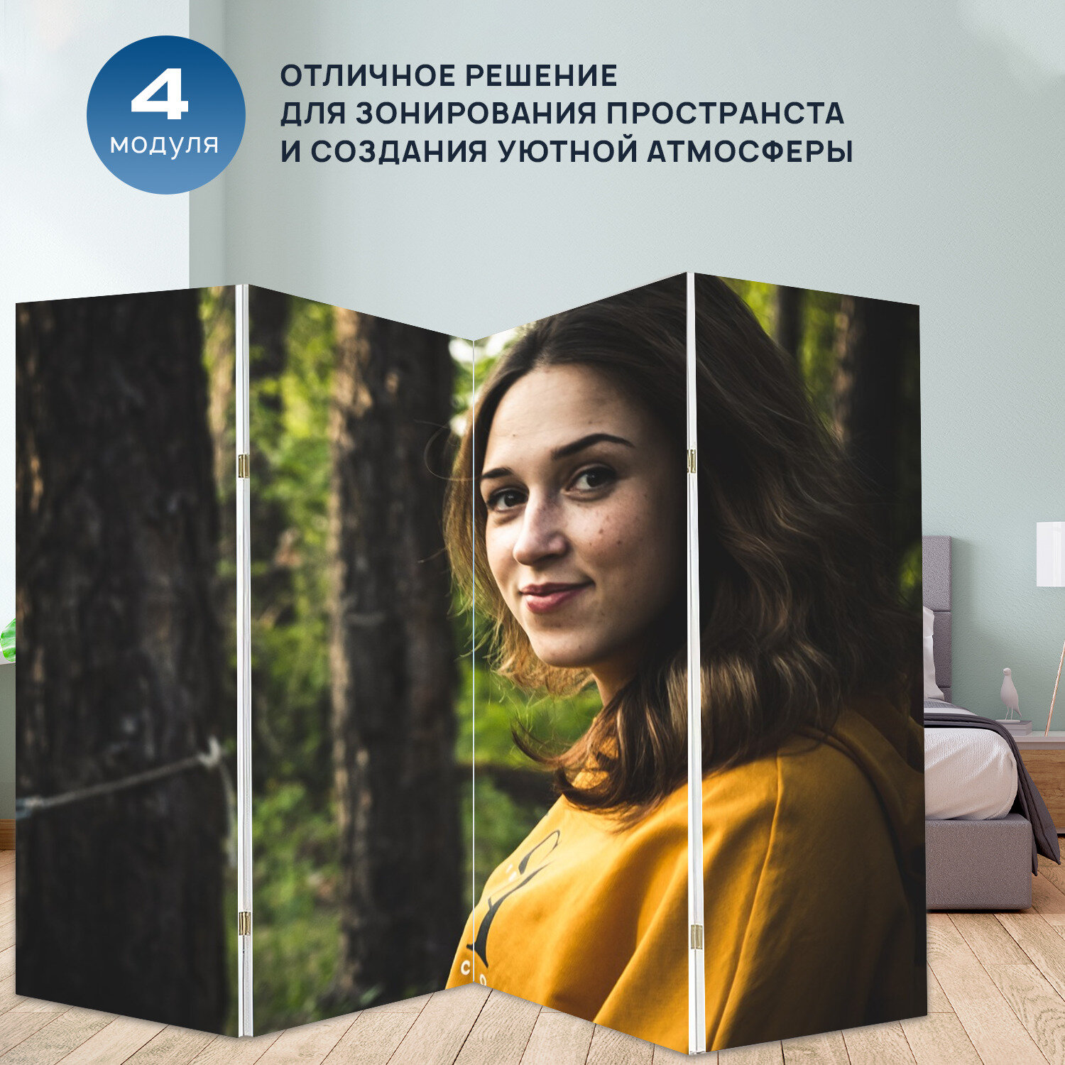 Купить Ширма перегородка с принтом "Девушка, лес, деревья" на холсте - 200x160 см. для зонирования, раскладная