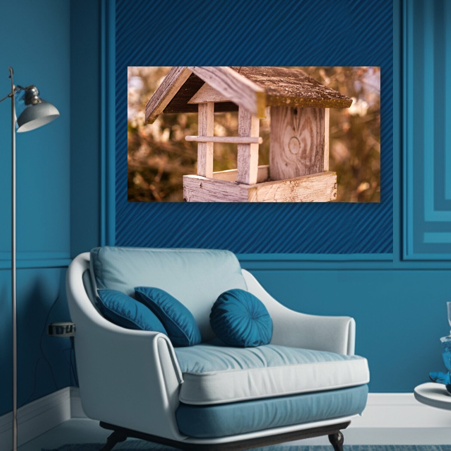 Купить Картина на холсте "Птичий домик, весна, сад" на подрамнике 75х40 см. для интерьера
