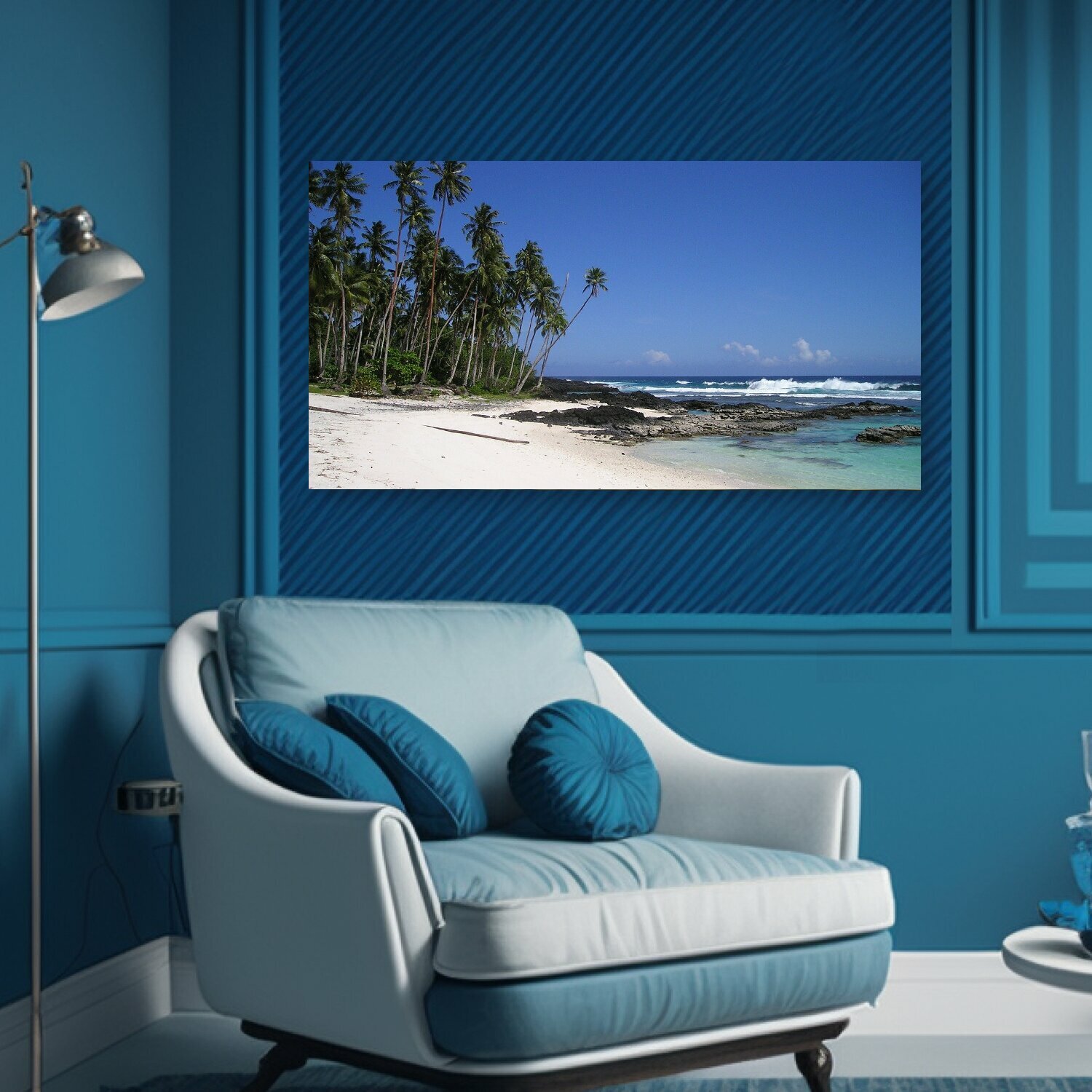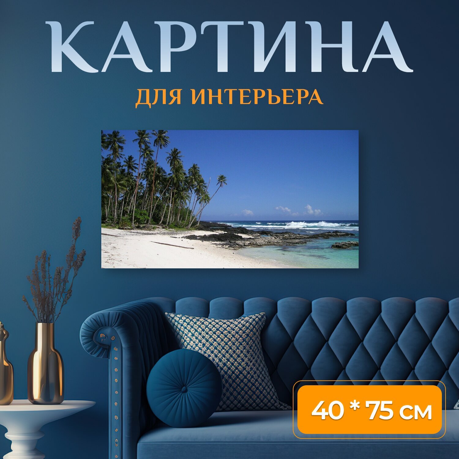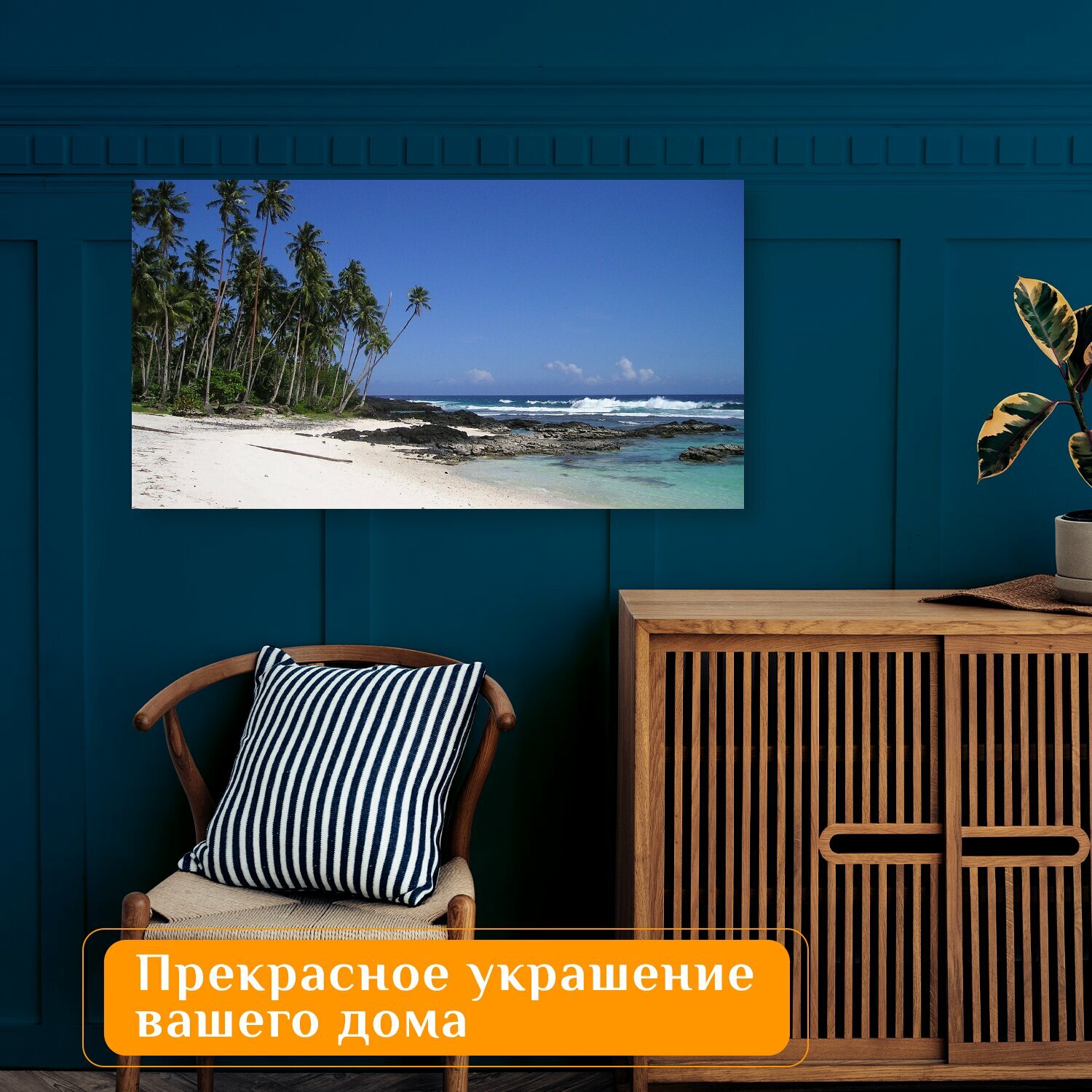 Картина на холсте "Пальмы, пляж, пляж мечты" на подрамнике 75х40 см. для интерьера интересное: