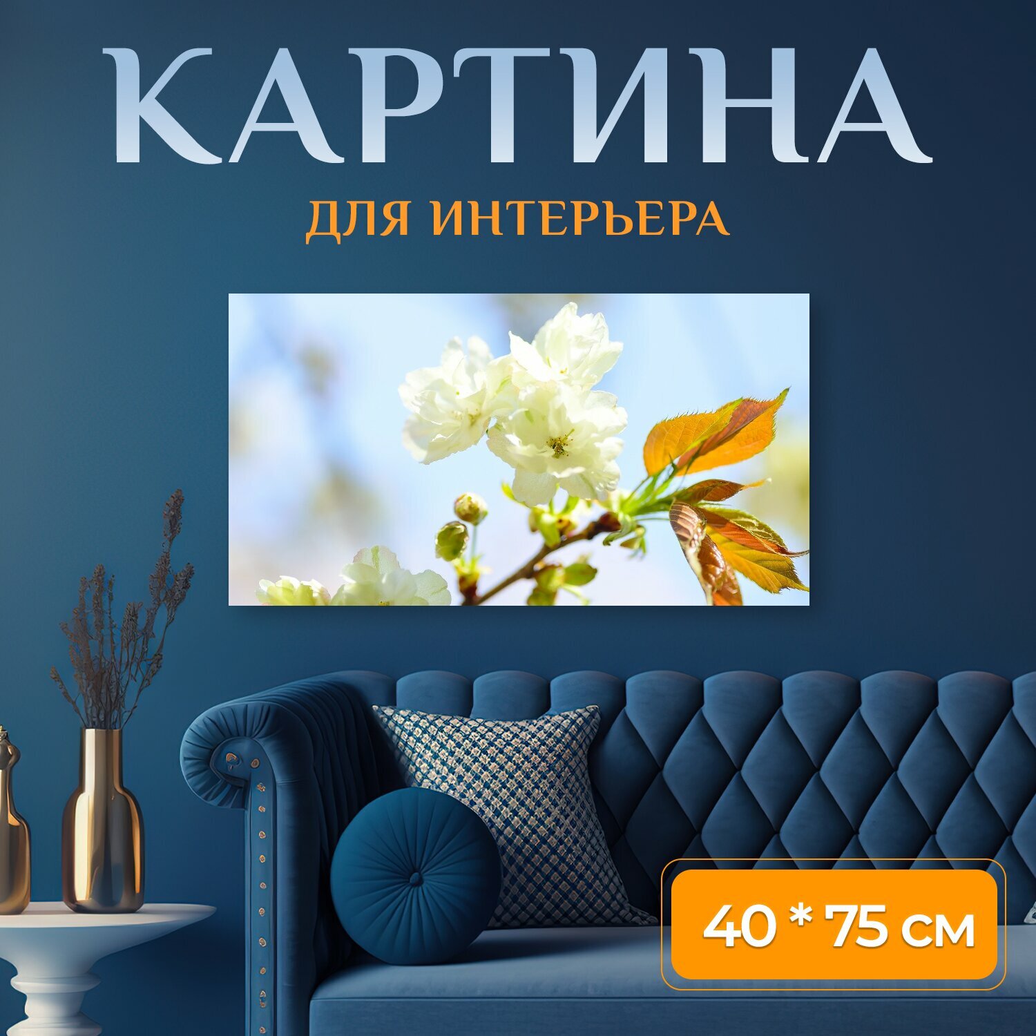 Картина на холсте "Цветы, природные, вишня" на подрамнике 75х40 см. для интерьера интересное: