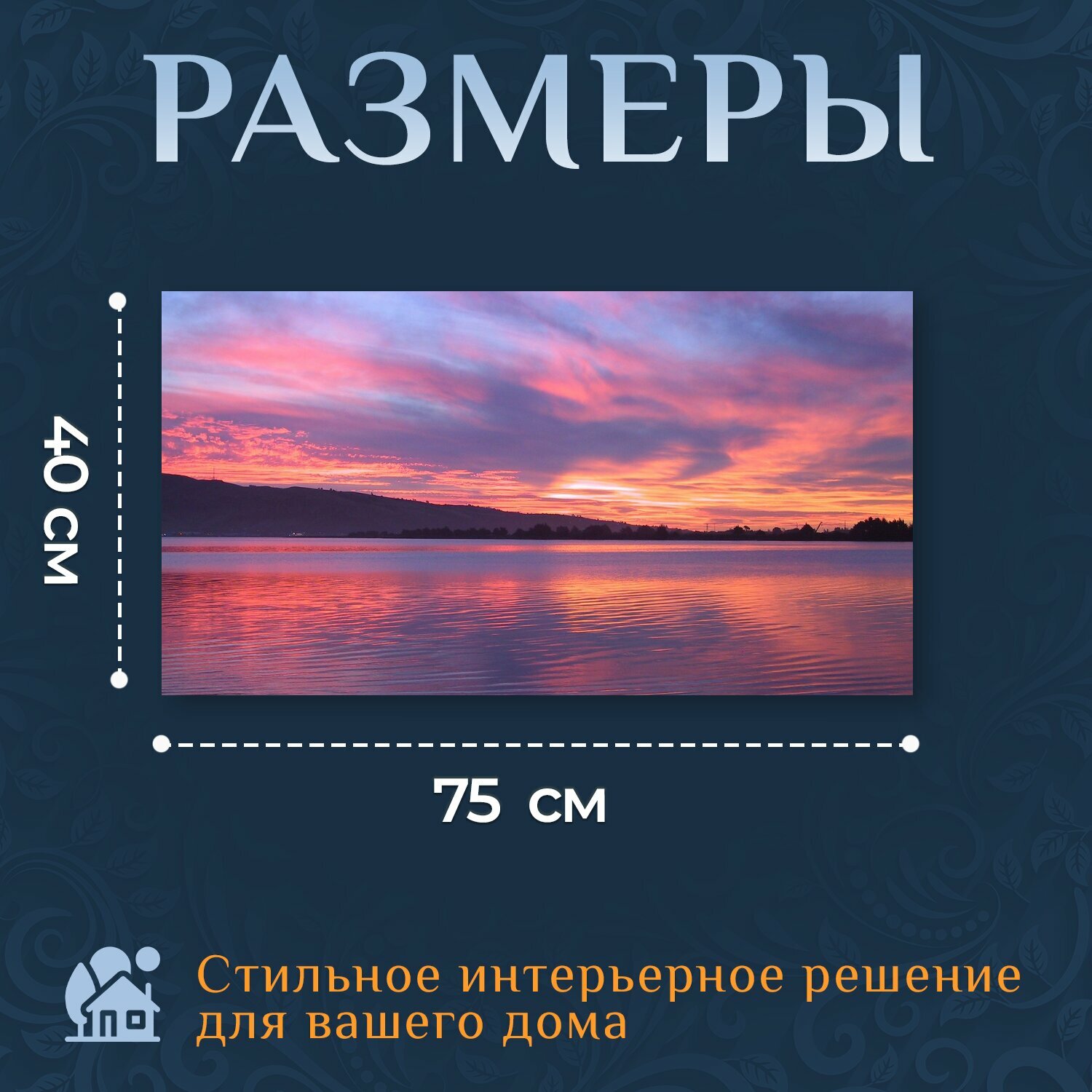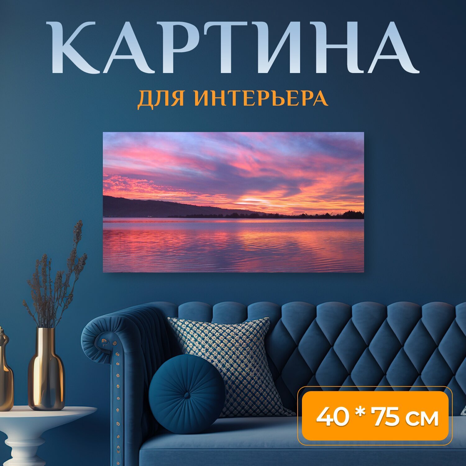 Картина на холсте "Озеро, канун, заход солнца" на подрамнике 75х40 см. для интерьера интересное: