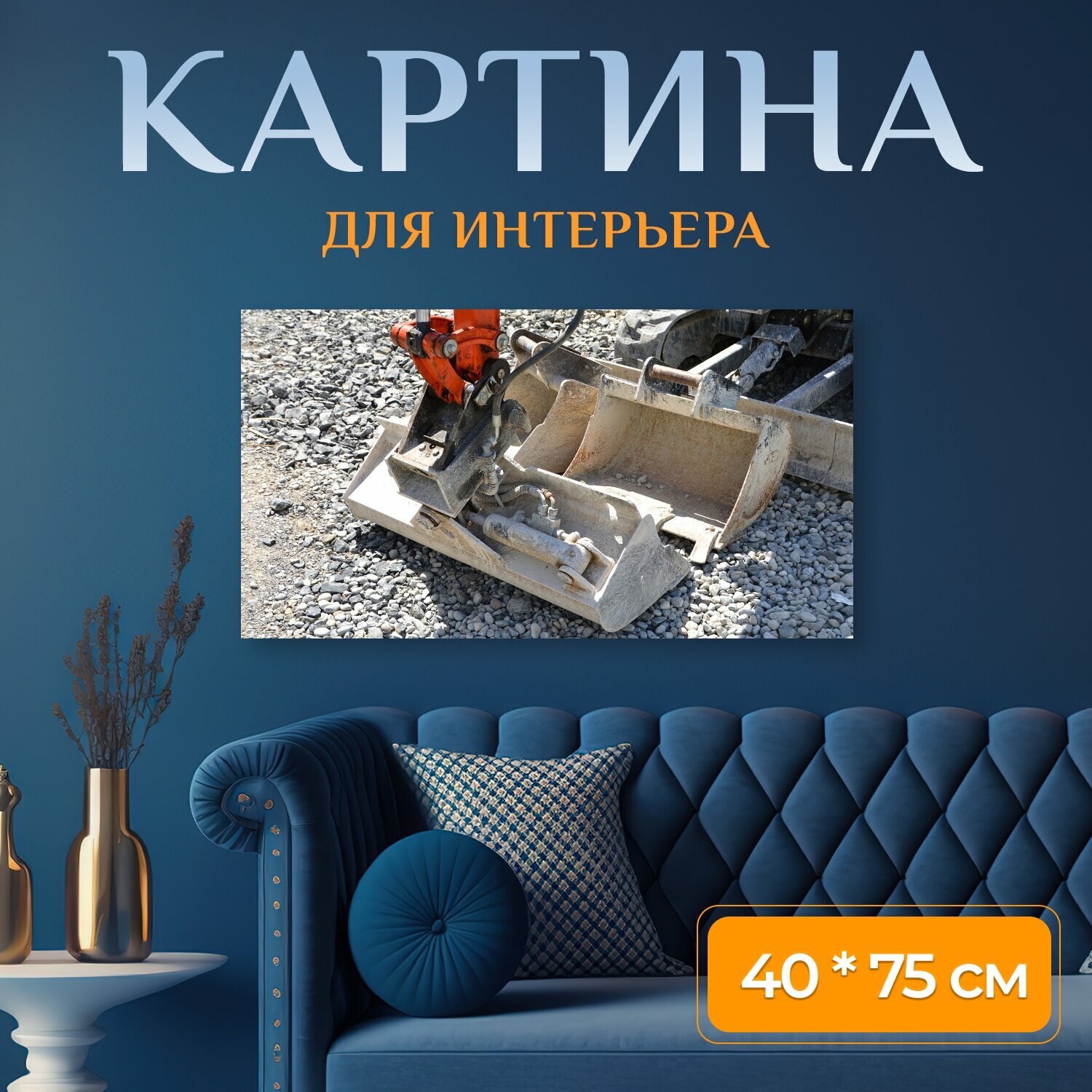 Купить Картина на холсте "Ковш экскаватора, строительная площадка, экскаватор" на подрамнике 75х40 см. для интерьера