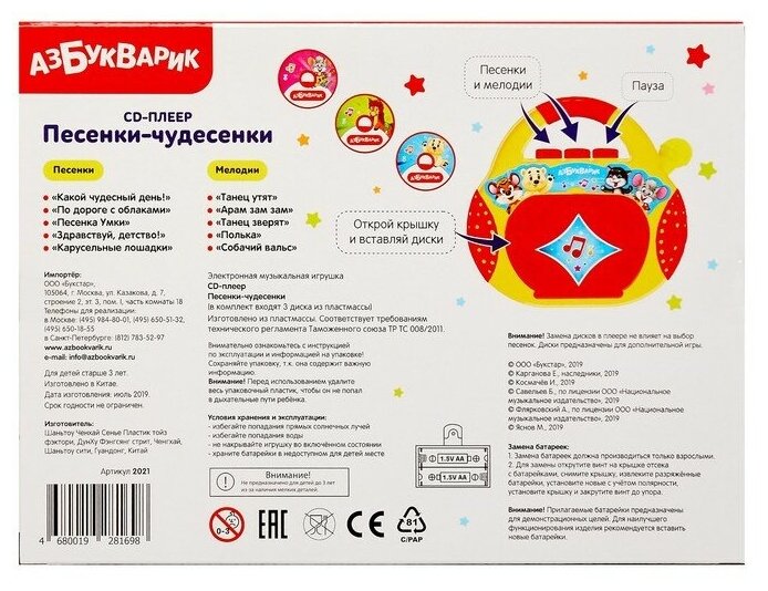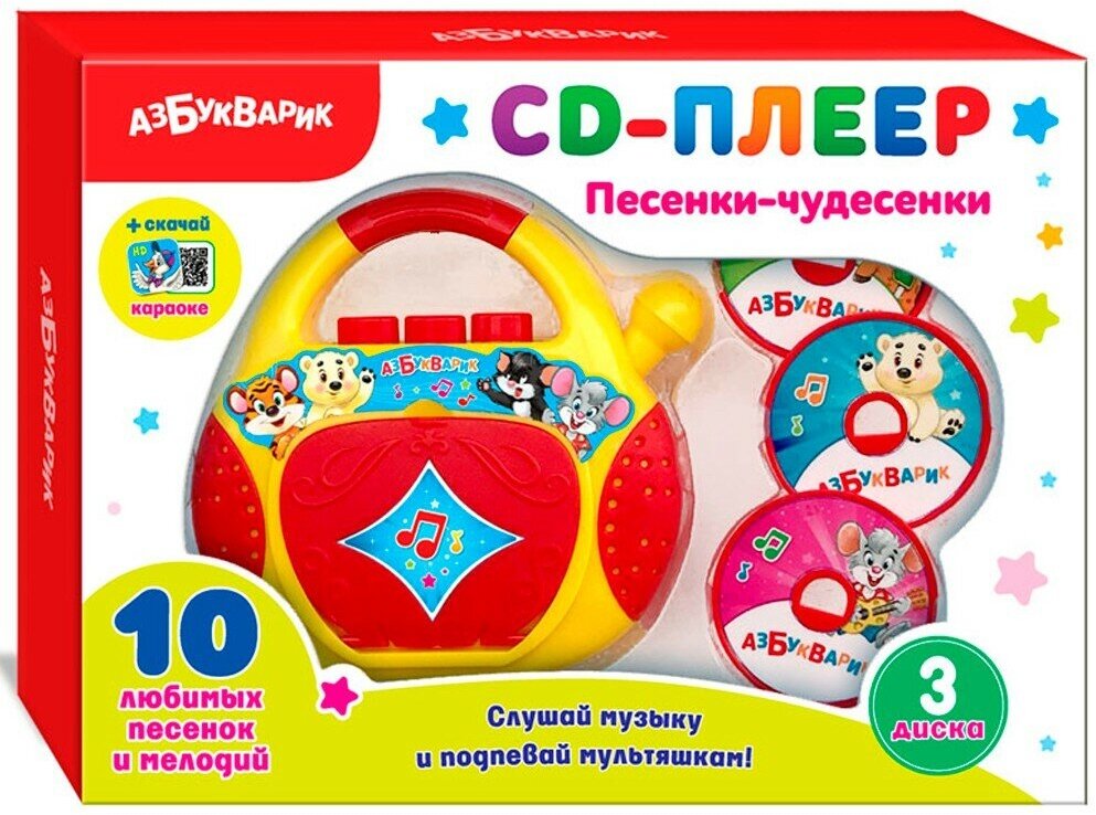 Электронная музыкальная игрушка CD-плеер Песенки чудесенки 3+ интересное: