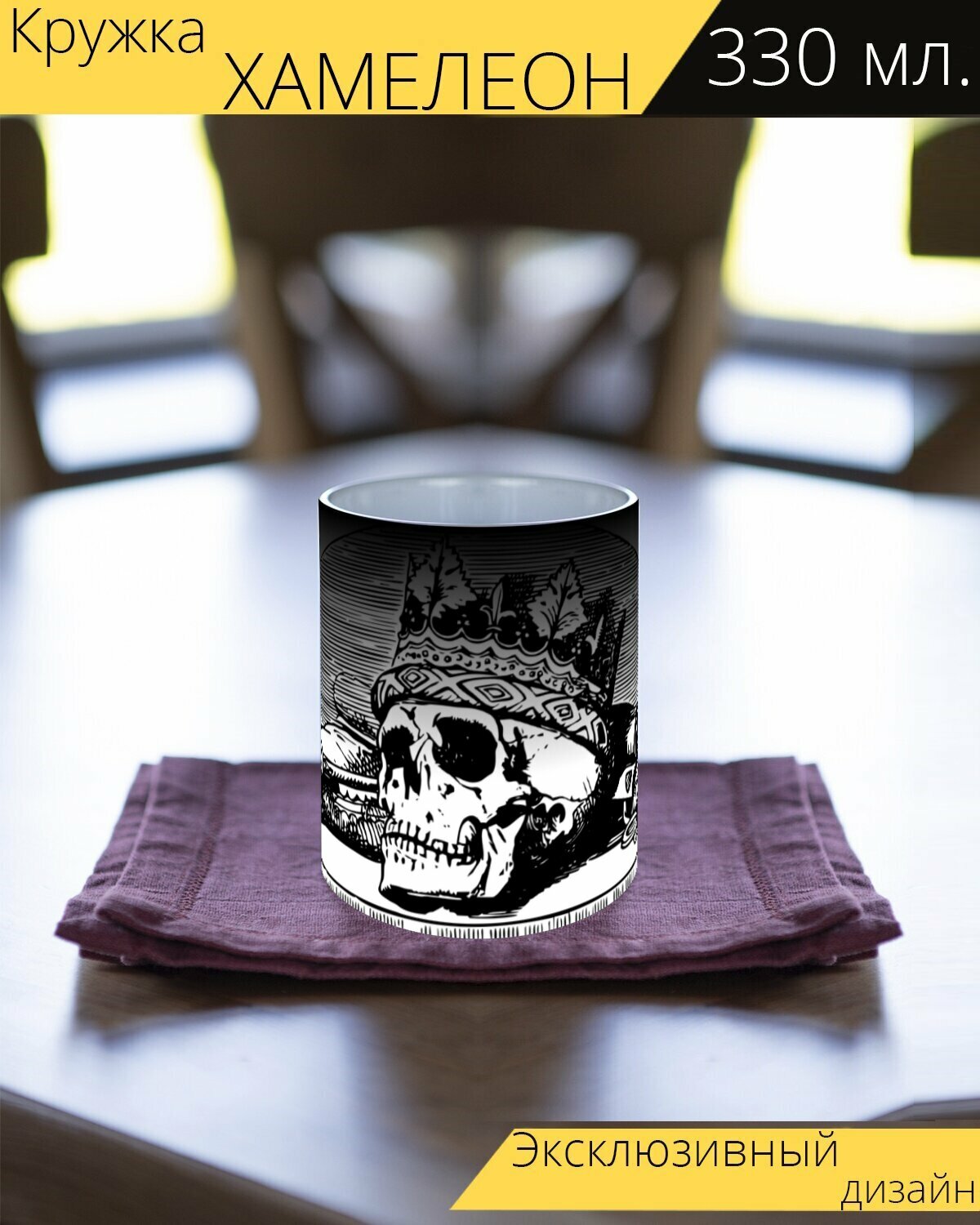 Кружка хамелеон с принтом "Череп с короной, череп, корона" 330 мл. интересное: