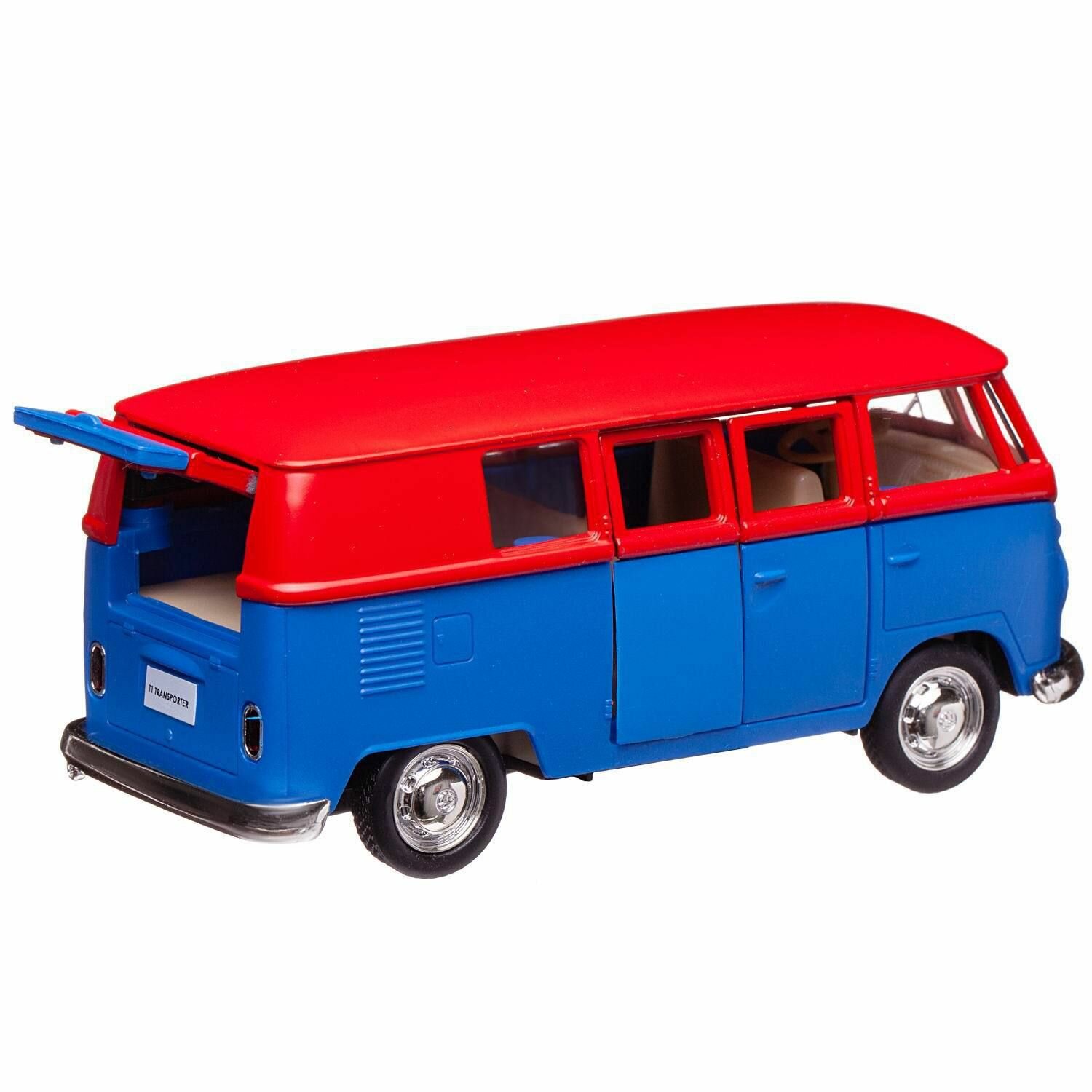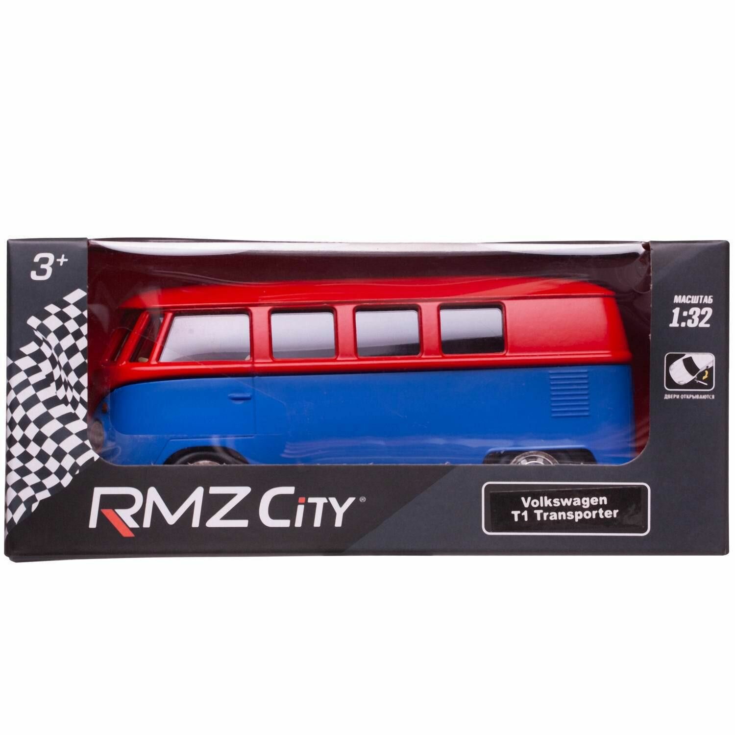 СохранитьМашинка металлическая Uni-Fortune RMZ City серия 1:32 Автобус инерционный Volkswagen Samba bus Transporter, цвет матовый красный с синим, двери открыв интересное: