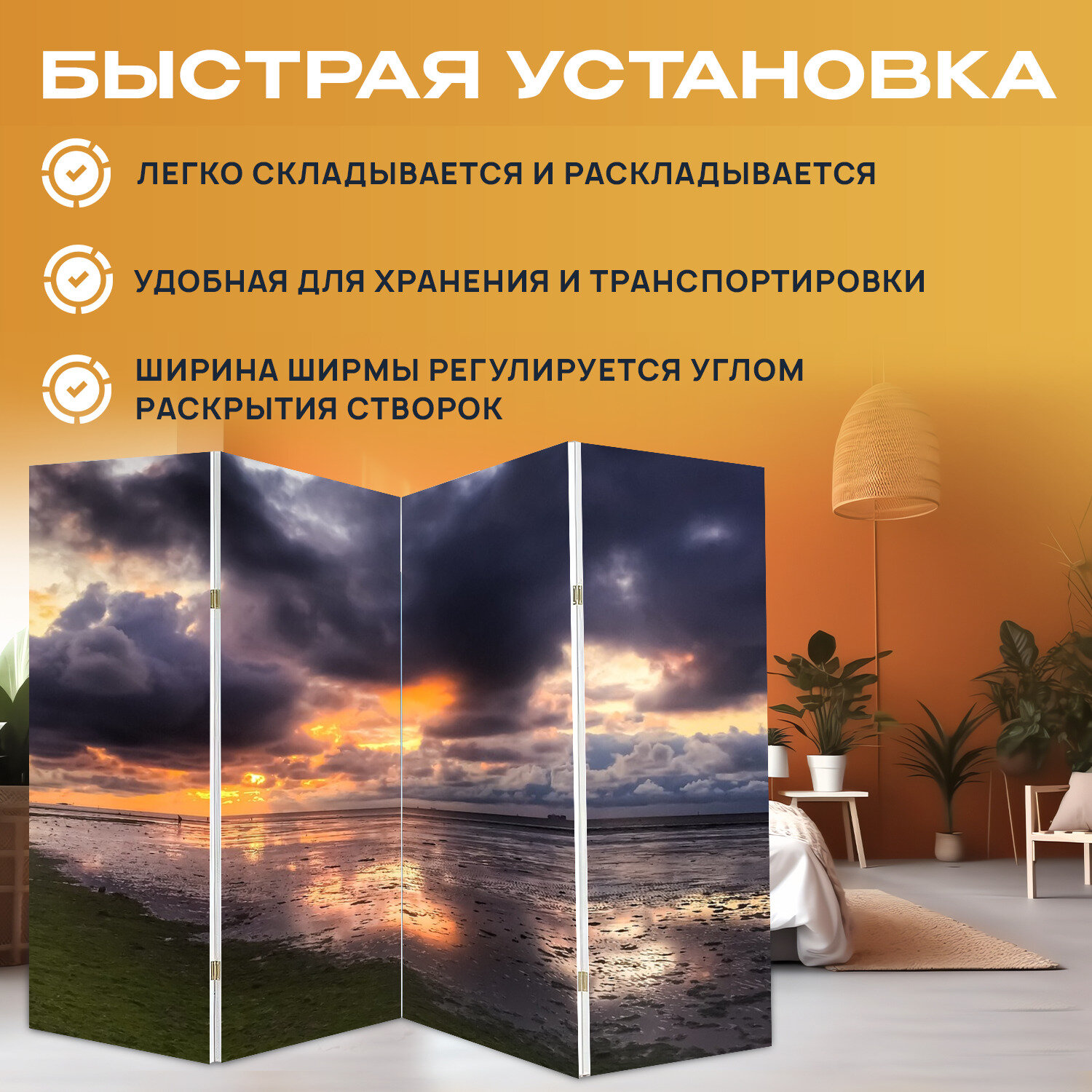 Ширма перегородка с принтом "Море, природа, пейзаж" на холсте - 200x160 см. для зонирования, раскладная интересное: