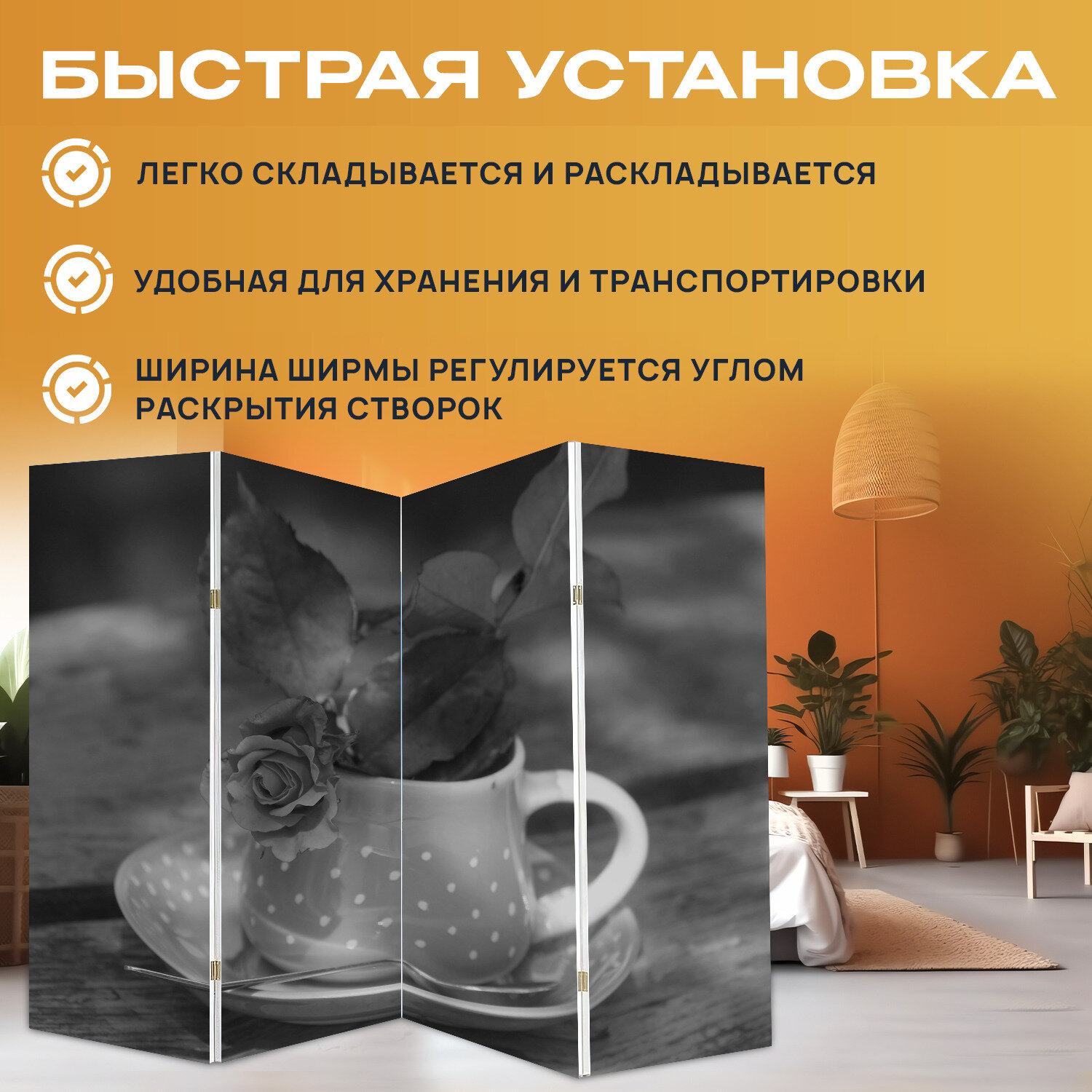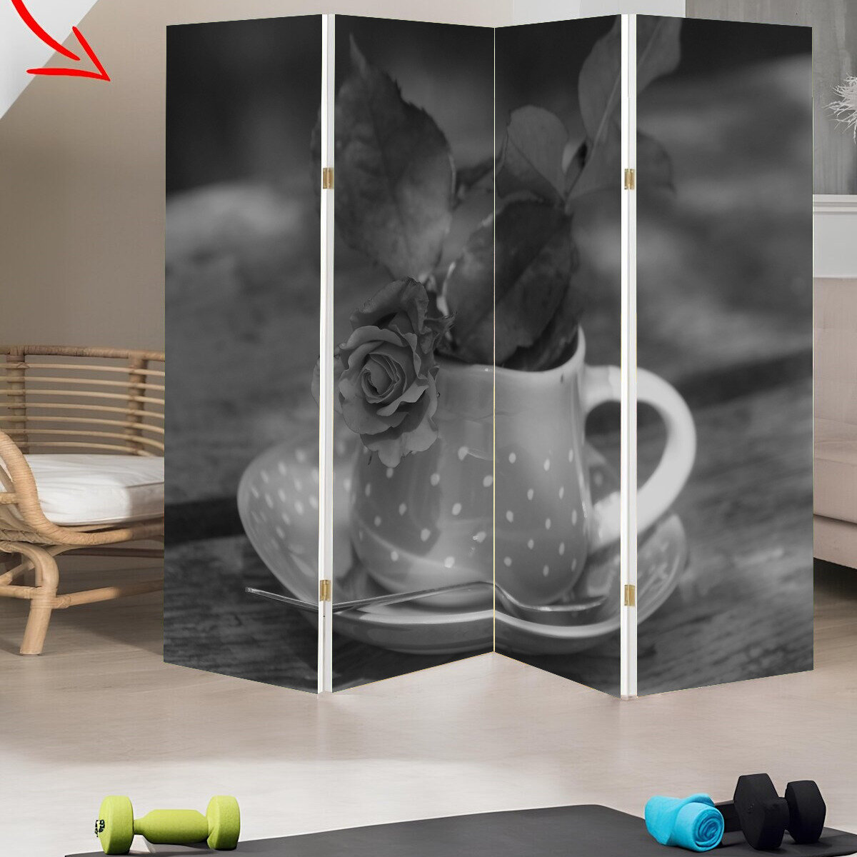 Ширма перегородка с принтом "Чашка, романтика, черное и белое" на холсте - 200x160 см. для зонирования, раскладная интересное: