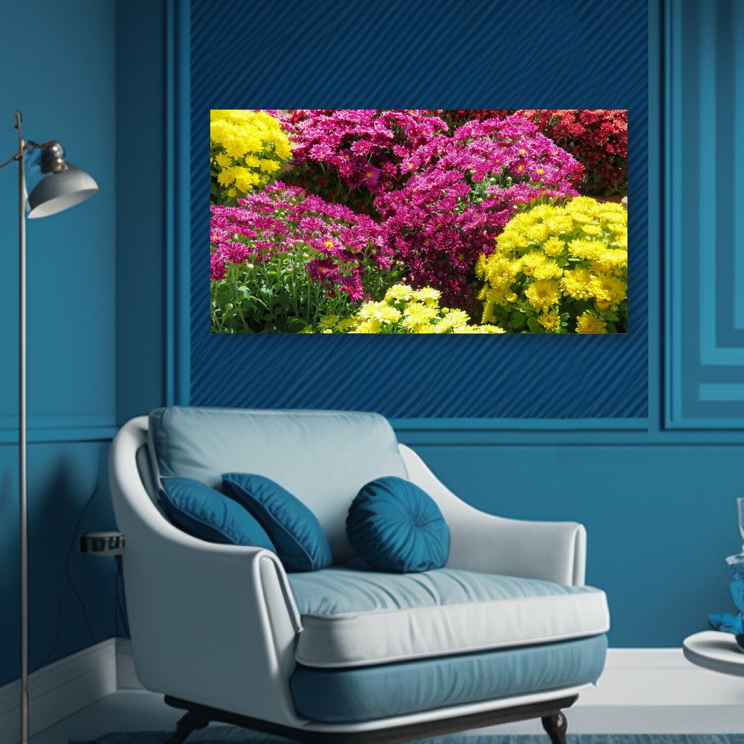 Картина на холсте "Хризантема, красочная природа, цветы" на подрамнике 75х40 см. для интерьера интересное: