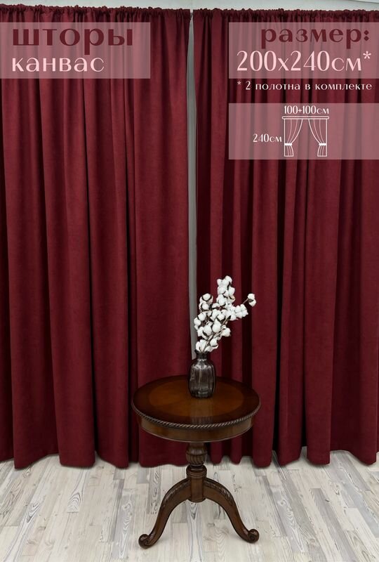 Шторы "Канвас" 200х240см (100х240см - 2шт), бордовые интересное: