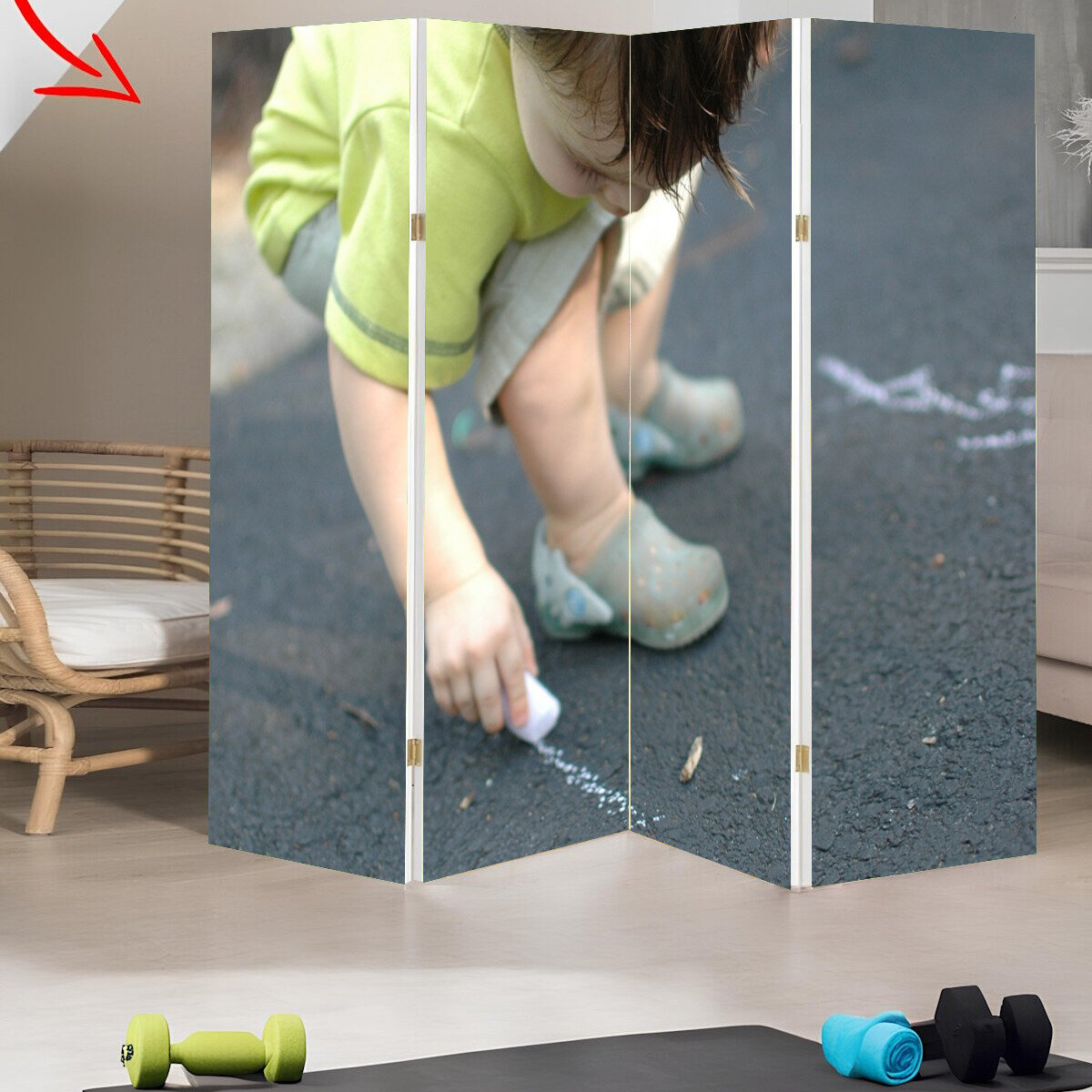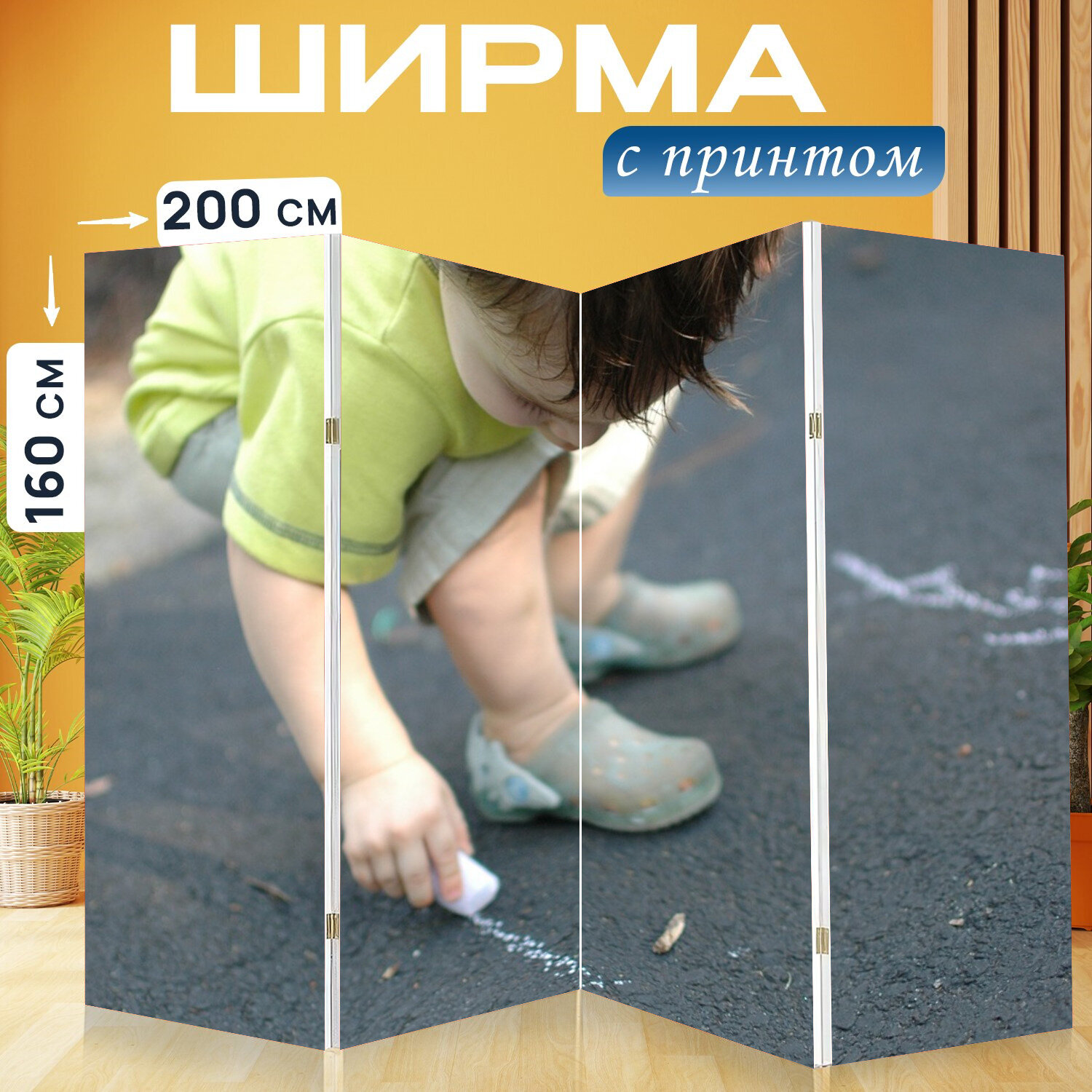 Купить Ширма перегородка с принтом "Мальчик, рисование, ребенок" на холсте - 200x160 см. для зонирования, раскладная