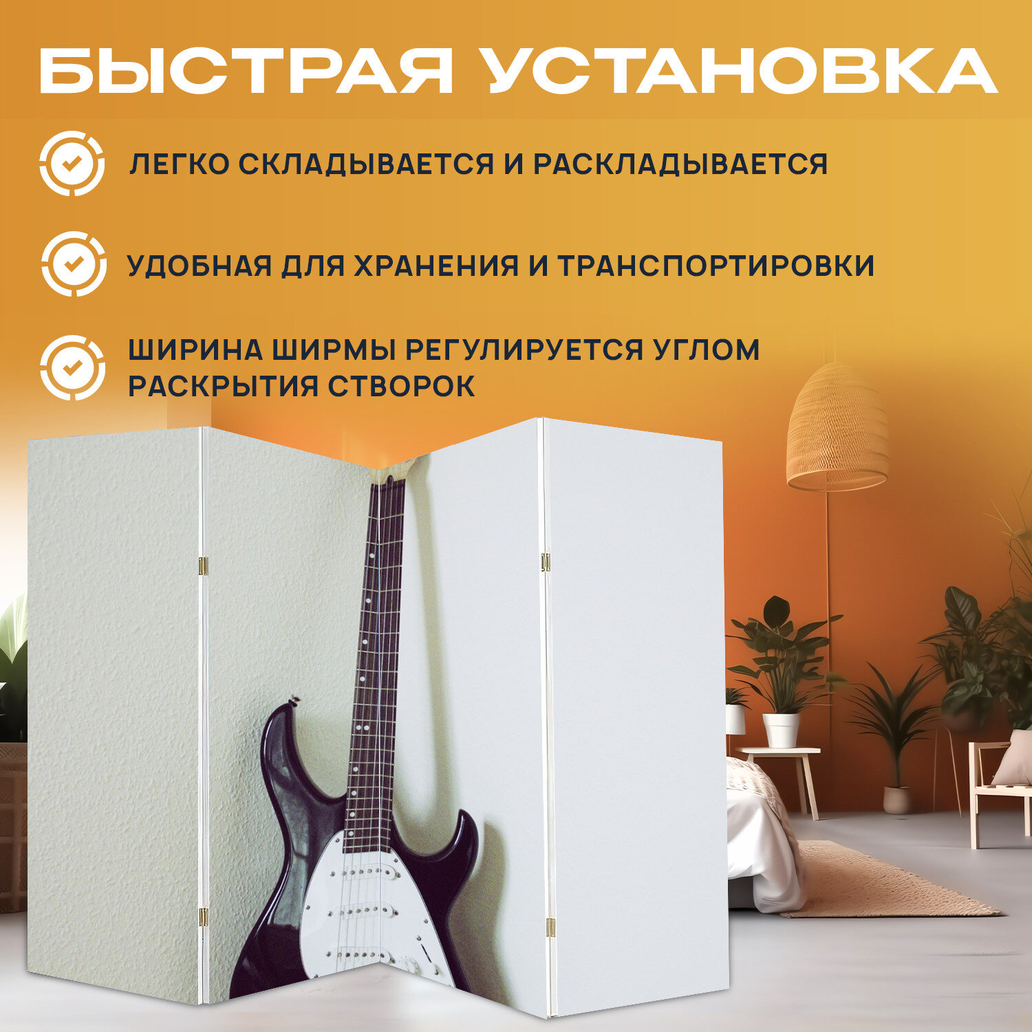 Ширма перегородка с принтом "Гитара, музыка, звук" на холсте - 200x160 см. для зонирования, раскладная интересное: