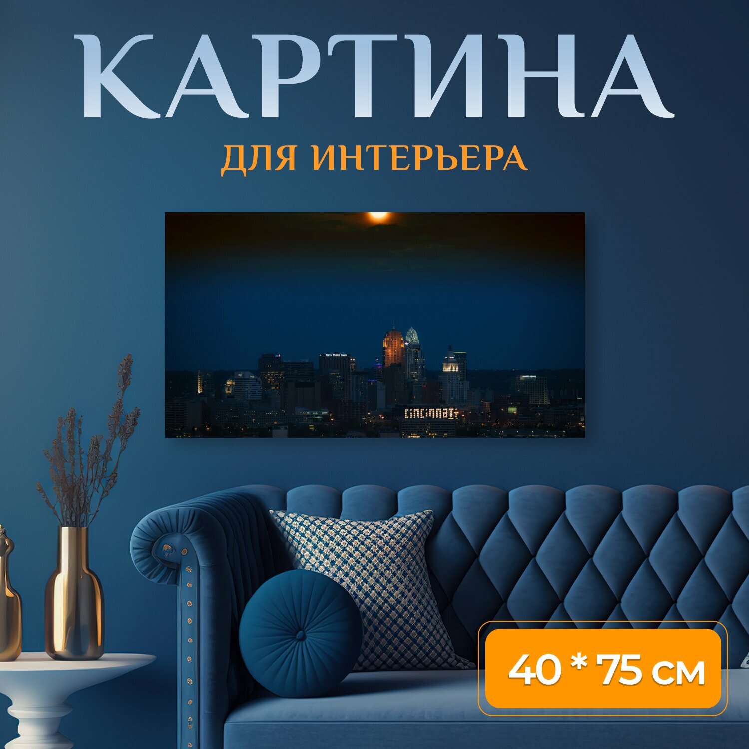 Картина на холсте "Цинциннати, огайо, линия горизонта" на подрамнике 75х40 см. для интерьера интересное: