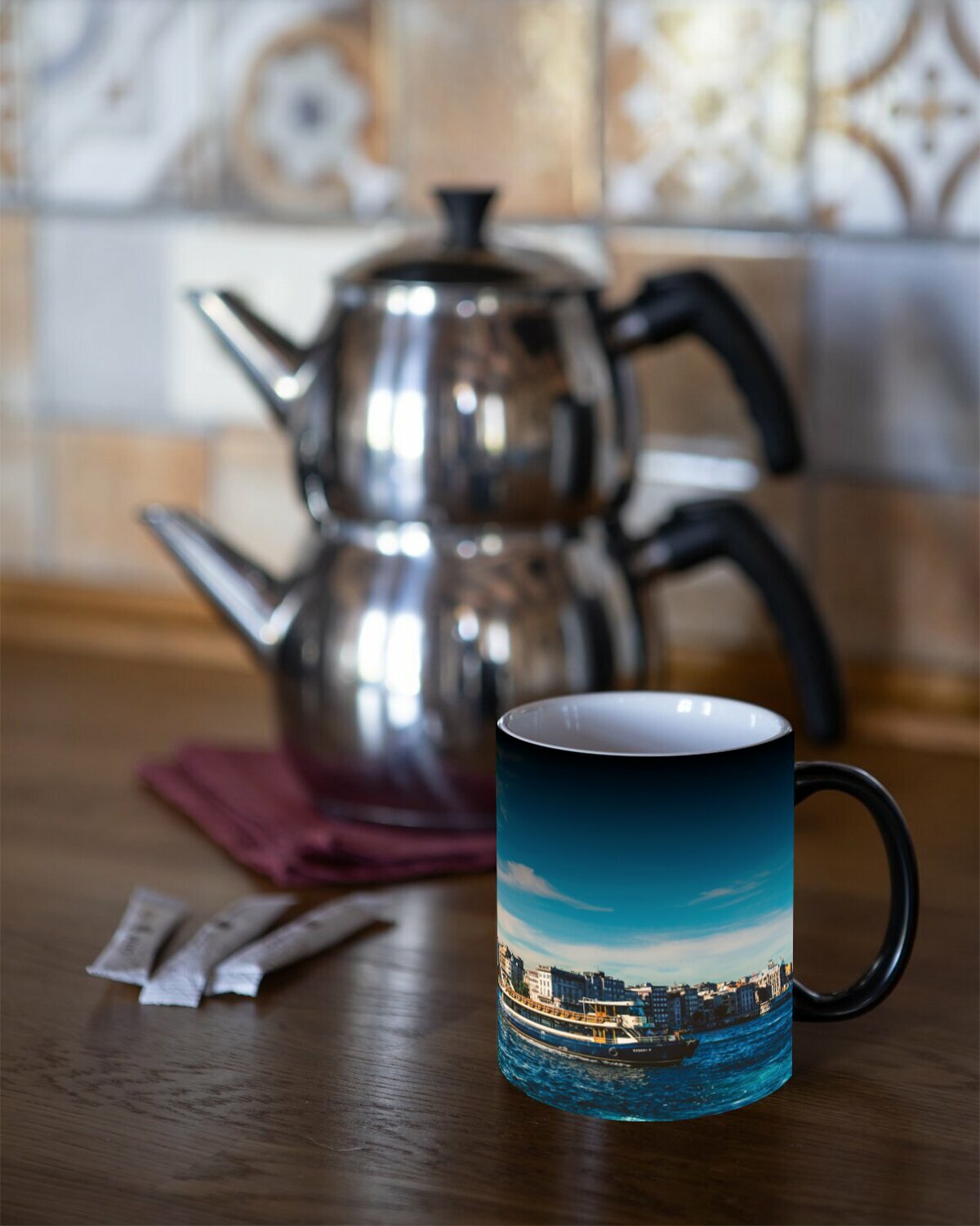 Кружка хамелеон с принтом "Стамбул, босфор, галата" 330 мл. интересное: