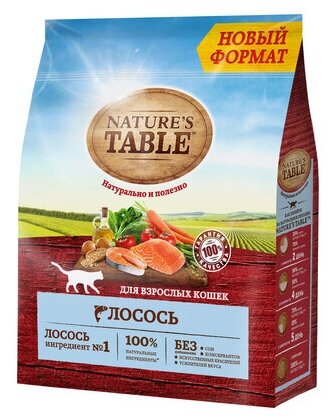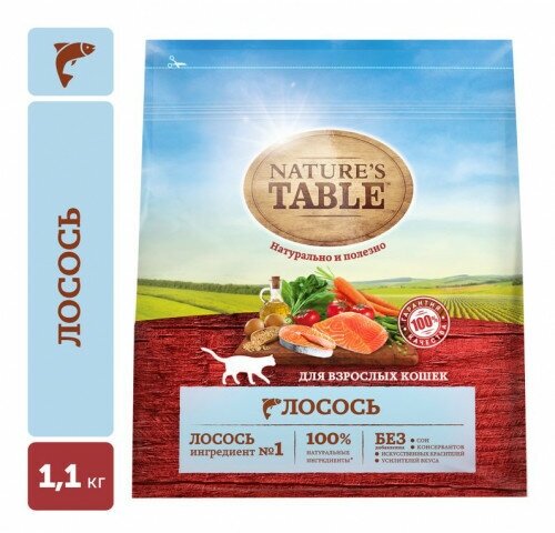 Natures Table Сухой корм Nature’s Table для взрослых кошек, Лосось, 1,1кг 10225519, 1,1 кг