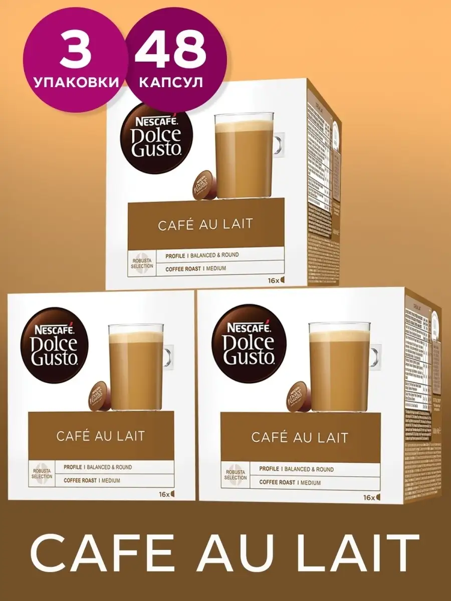 Кофе в капсулах Nescafe Dolce Gusto Cafe Au Lait, 48 шт., 16 капсул х 3 упаковки