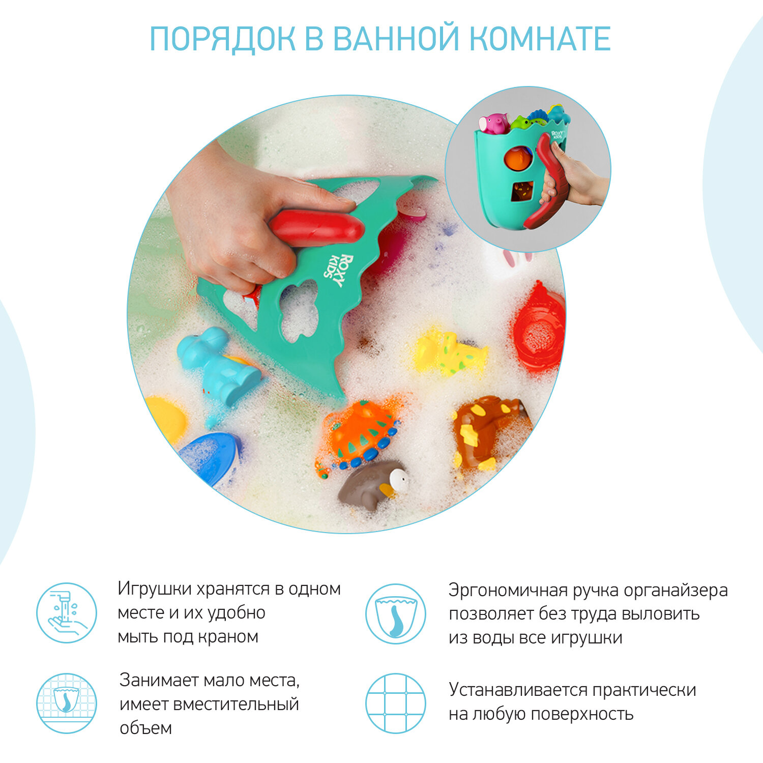 Органайзер детский ковш для ванной для игрушек для купания DINO от ROXY-KIDS, цвет голубой