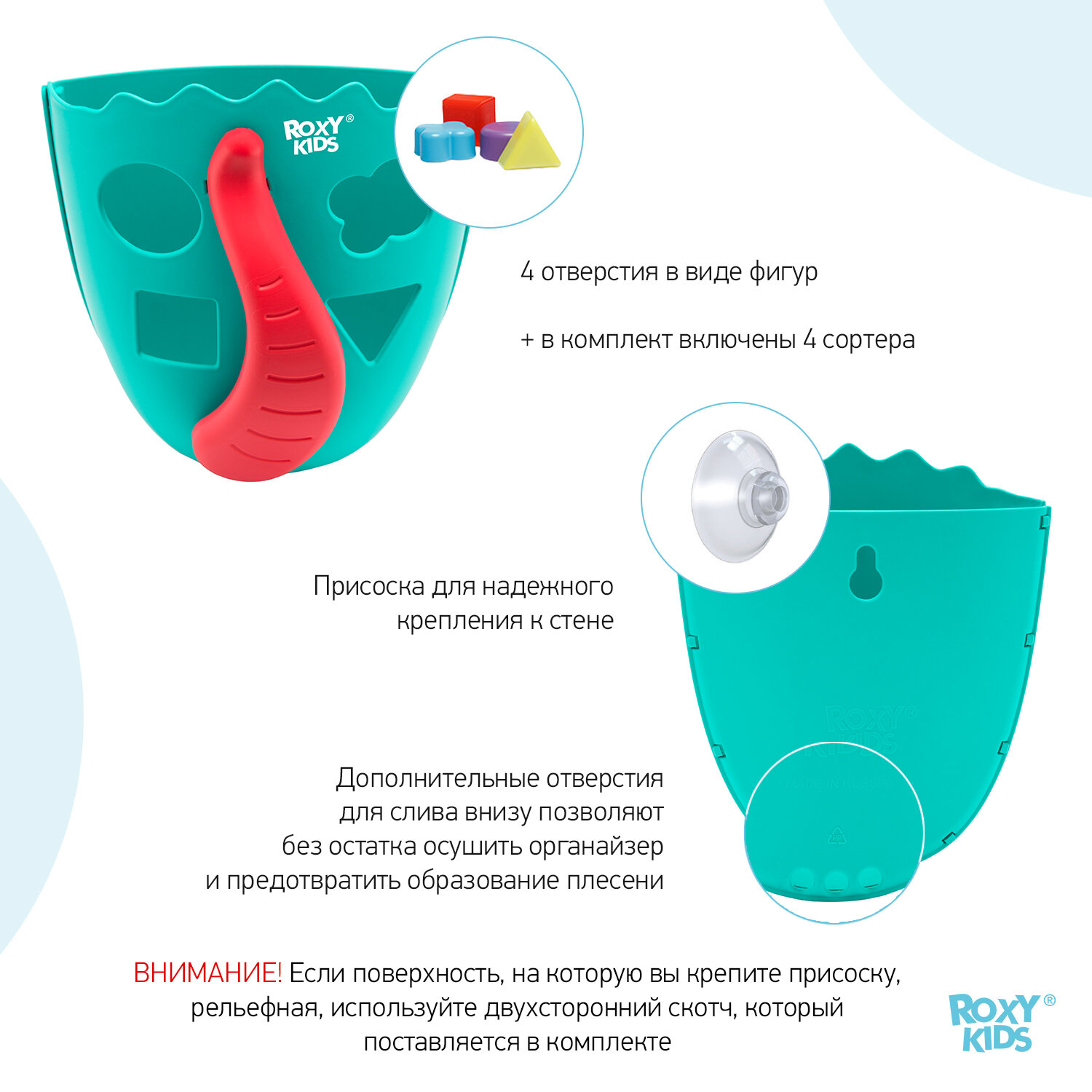 Органайзер-сортер ROXY KIDS Roxy-kids для игрушек в ванную, мятный, RTH-001M