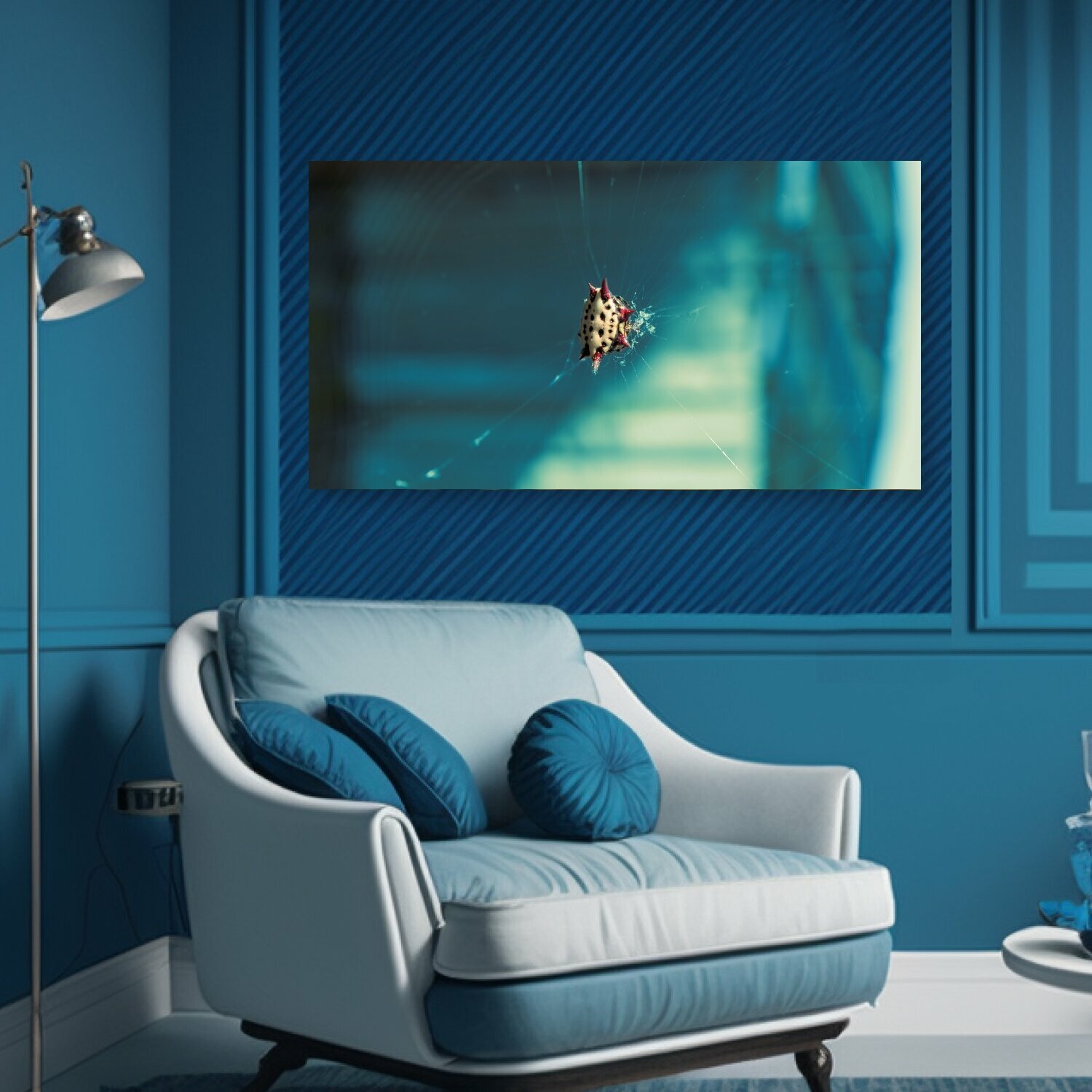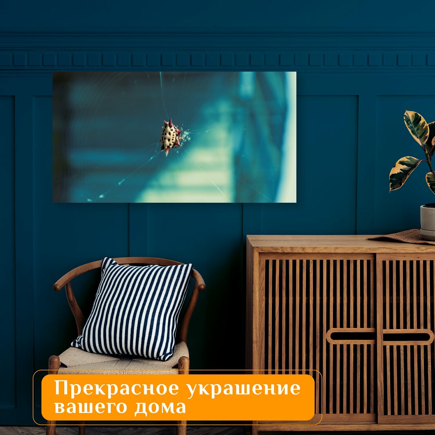 Купить Картина на холсте "Паук, ткач сфер, синий" на подрамнике 75х40 см. для интерьера