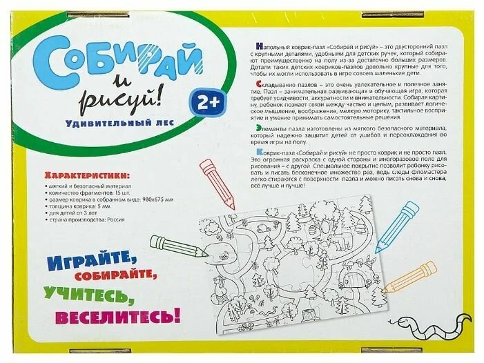 Коврик-пазл напольный. Собирай и рисуй. Удивительный лес