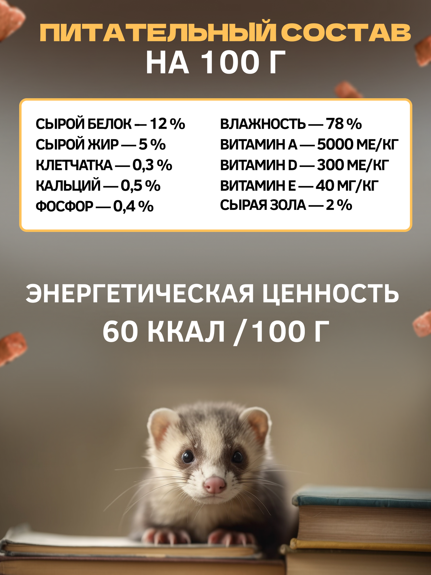 | Плюсы: | Все супер, хорек лопает за обе щёки |