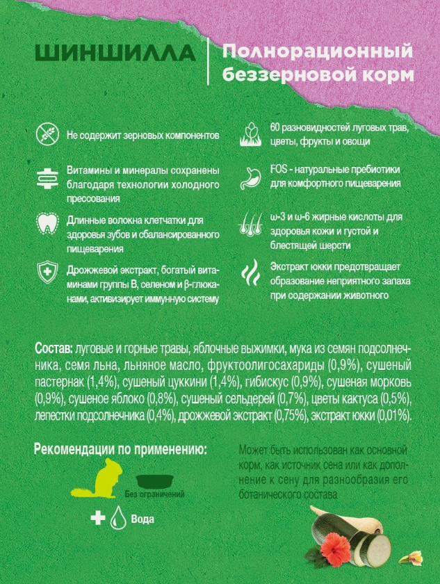 | Плюсы: | Шиншилла съедает все, лучше чем зерновая смесь. |