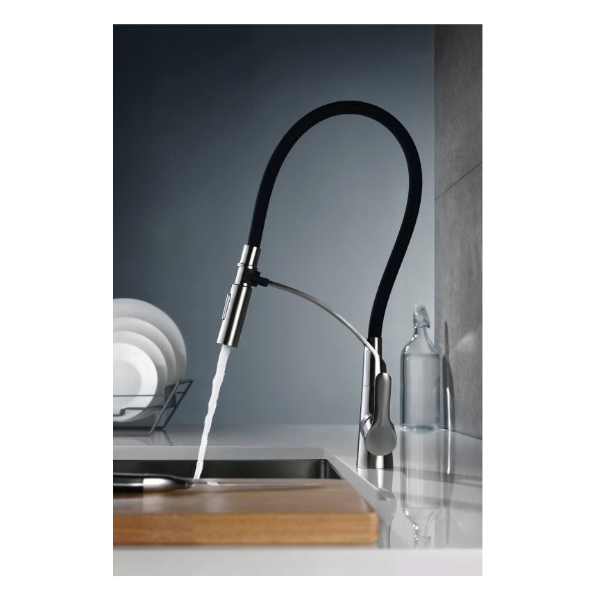 Смеситель для кухни BelBagno гибкий излив, сатин/черный (BB-LAM36-IN)