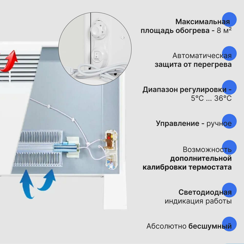 Конвектор ENSTO EPHBE05PR, 8 м², белый