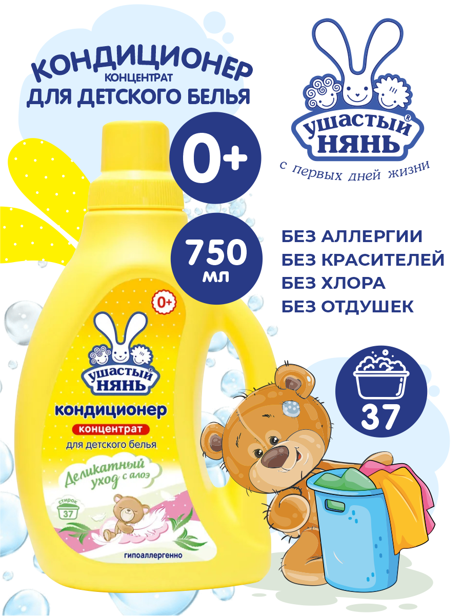 Кондиционер-ополаскиватель для детского белья Ушастый нянь, с алоэ вера, 750мл (137211)